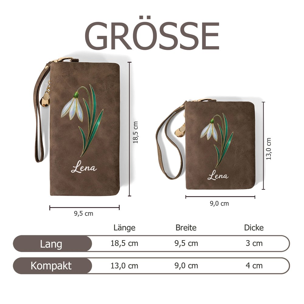 Dieses mehrschichtige Portemonnaie überzeugt durch sein schlichtes und elegantes Erscheinungsbild und kann individuell mit der Geburtsblume, dem Namen des Beschenkten sowie einem dezenten Perlenakzent gestaltet werden. Diese persönliche Note verleiht dem Portemonnaie eine besondere und bedeutungsvolle Ausstrahlung, wodurch es zu einem geschätzten Accessoire wird, das die Individualität seines Trägers stilvoll hervorhebt.