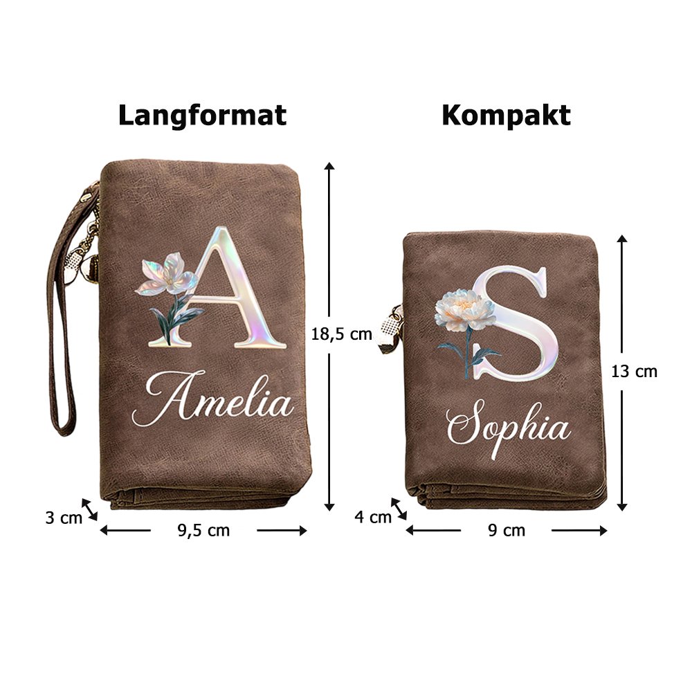 Wählen Sie zwischen einem kurzen oder langen Design, entscheiden Sie sich für eine von sieben Farben, wählen Sie die Geburtsblume, die Ihrem Geburtsmonat entspricht, und fügen Sie einen Namen hinzu. Das gedruckte Design präsentiert eine Perleninitiale im Laserstil zusammen mit der Geburtsblume und verwandelt ein schlichtes Portemonnaie in ein persönliches Schmuckstück, das Ihre Individualität zum Ausdruck bringt.