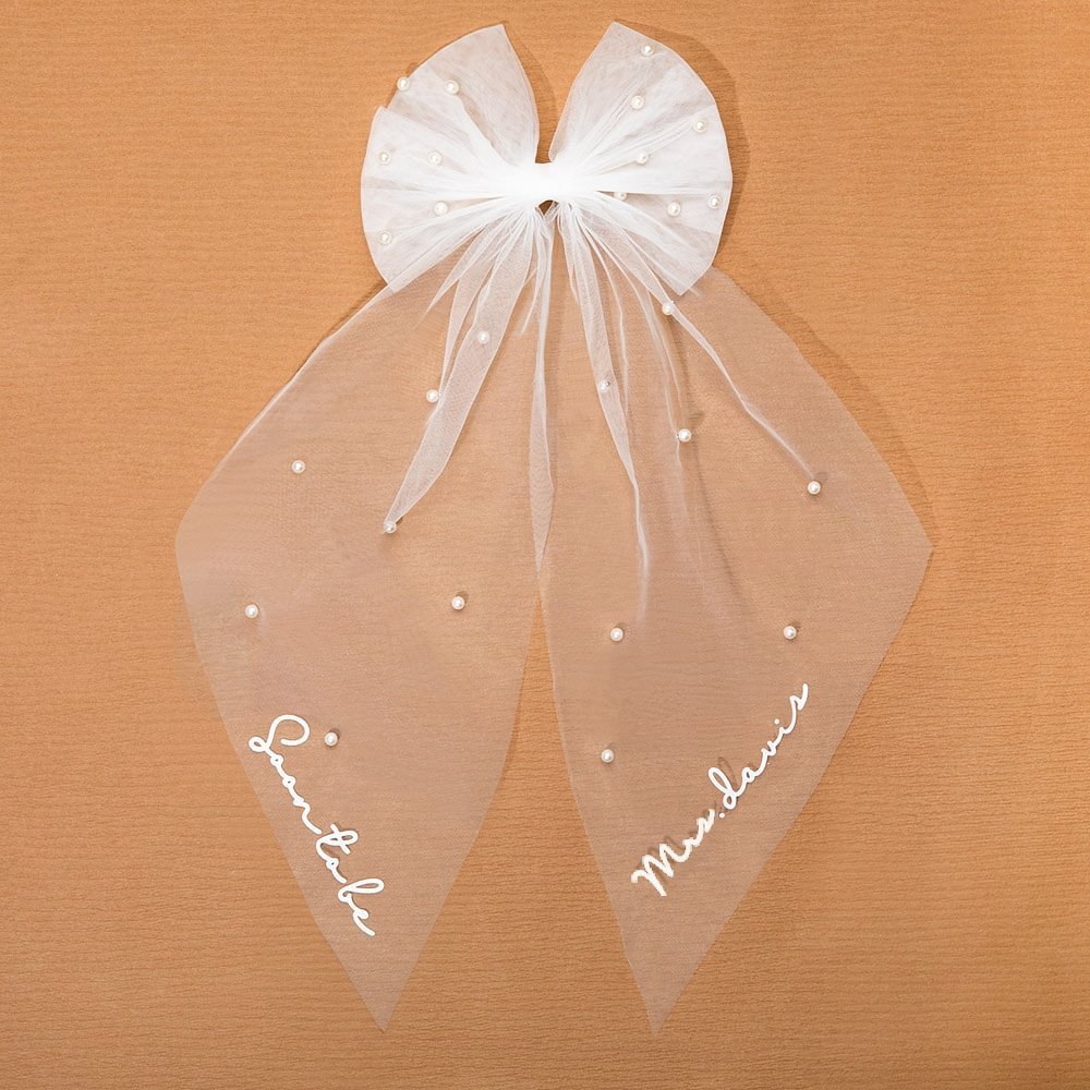 Verleihen Sie diesem Schleier eine persönliche Note, indem Sie einen aussagekräftigen Text personalisieren. Durch diese Personalisierung wird sich die zukünftige Braut auf ihrer Party oder Hochzeit ganz besonders fühlen.