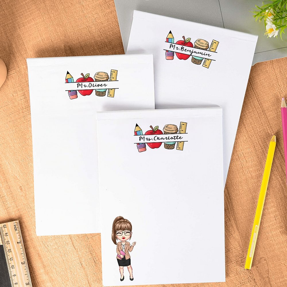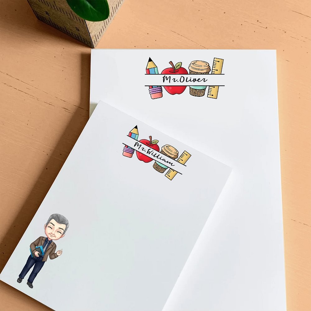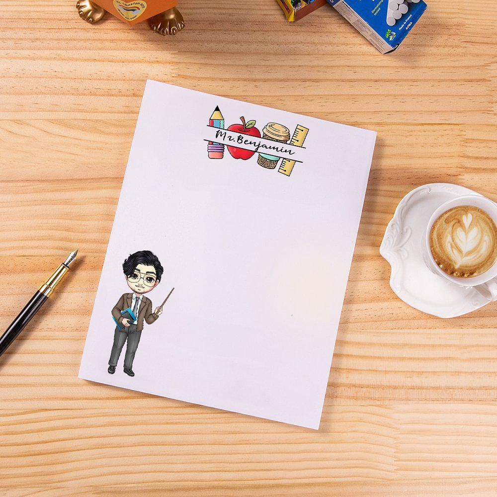 Dieses Notizbuch mit Cartoon-Charakter ist von pädagogischen Elementen inspiriert und kombiniert geschickt Bleistifte, Lineale, Äpfel und Lehrerbilder, was sehr interessant ist. Sie können auch den Namen des Lehrers anpassen, um Respekt und Anerkennung für den Lehrer zu zeigen. Wenn Lehrer ein solch exklusives Notizbuch in der Hand halten, werden sie zweifellos ein Gefühl des beruflichen Stolzes und der Zugehörigkeit haben.