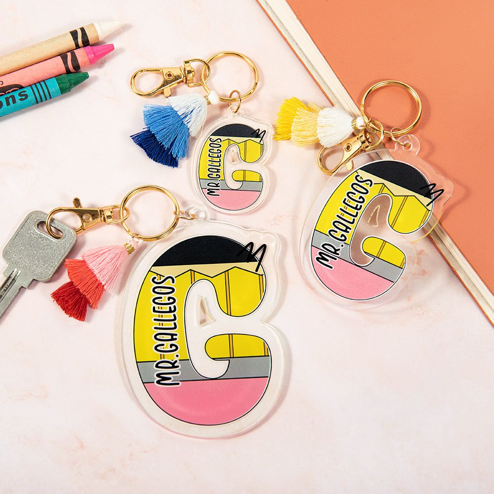 Feiern Sie besondere Anlässe wie Teacher Appreciation Week, Geburtstage, End-of-Jahres-Abschiede, Abschlüsse oder Feiertage mit dem personalisierten Bleistift Apple Design Acryl Initial Keychain. Diese nachdenklich, anpassbare Geschenk ist eine wunderbare Möglichkeit, um Lehrer Ihre Dankbarkeit und Wertschätzung zu zeigen.