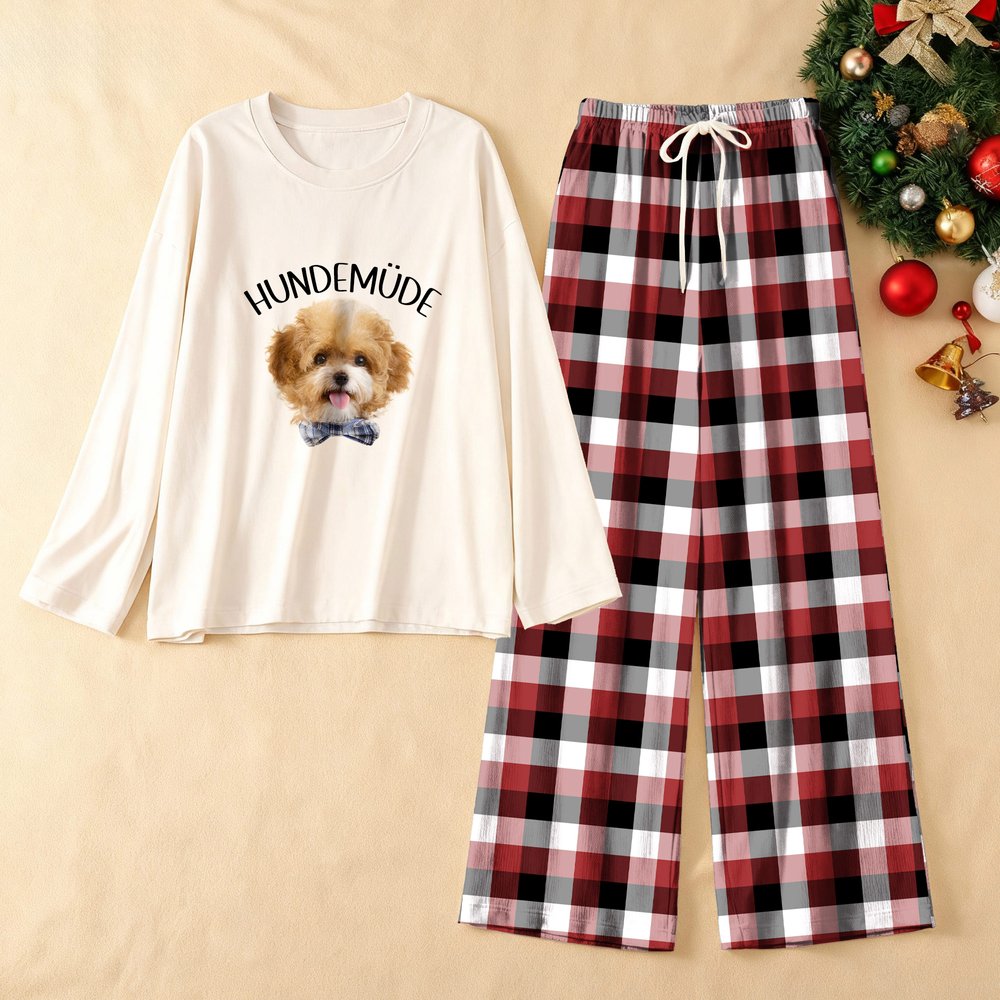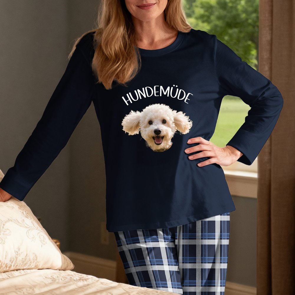 Dieses Pyjama-Set besticht durch einen Fotodruck des Gesichts Ihres Haustiers sowie einen individuellen Text. Das langärmelige Oberteil und die karierte Hose machen Ihren pelzigen Begleiter zu einem gemütlichen Modestatement, das jeden Moment in der Loungewear besonders gestaltet.