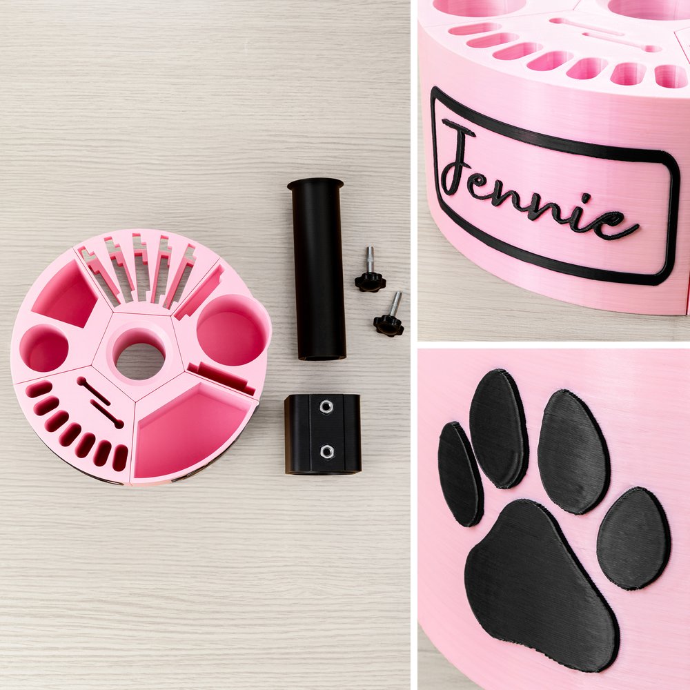 Personalisierte Pet Grooming Tools Halter für Tabelle Arm Portable Grooming Supplies Schere Klinge Storage Organizer Grand Opening Geschenk für Tierpfleger