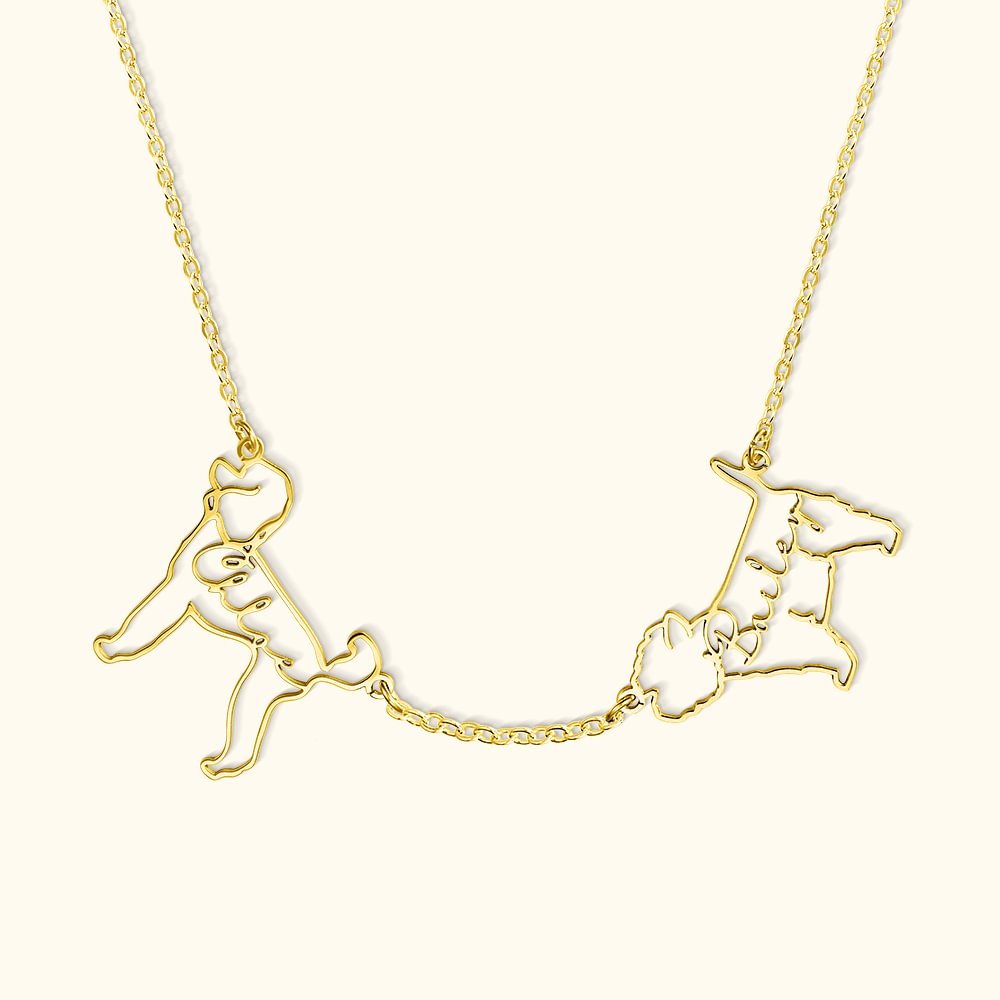 Diese Halskette zeigt einen Anhänger mit der Silhouette der von Ihnen gewählten 1-4 Hunde-/Katzenrassen und ist somit eine persönliche Hommage an Ihr geliebtes Haustier. Sie können auch den Namen Ihres Haustieres hinzufügen, um ein wirklich einzigartiges Schmuckstück zu schaffen.