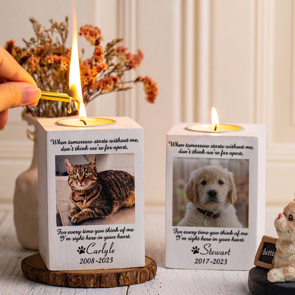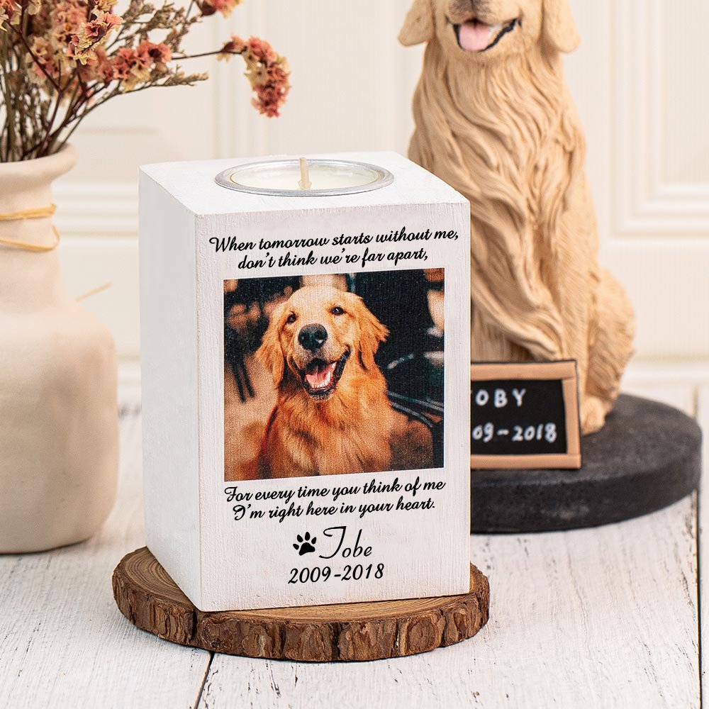 Unser Kerzenhalter ist eine herzliche Art und Weise, Ihr geliebtes Haustier zu ehren und zu erinnern. Dieses einzigartige Erinnerungsgeschenk können Sie mit Ihrem Lieblingsfoto Ihres pelzigen Freundes individuell gestalten. Jedes Mal, wenn Sie die Kerze anzünden, werden ihr Leben und ihr Geist hell erstrahlen und eine tröstliche Atmosphäre mit wertvollen Erinnerungen schaffen. (RUHIGES AMBIENTE): Dieser Kerzenhalter schafft eine beruhigende und ruhige Atmosphäre in jedem Raum. Er ist eine perfekte Ergänzung für Ihr Heimdekor und spendet Trost in Momenten der Erinnerung.