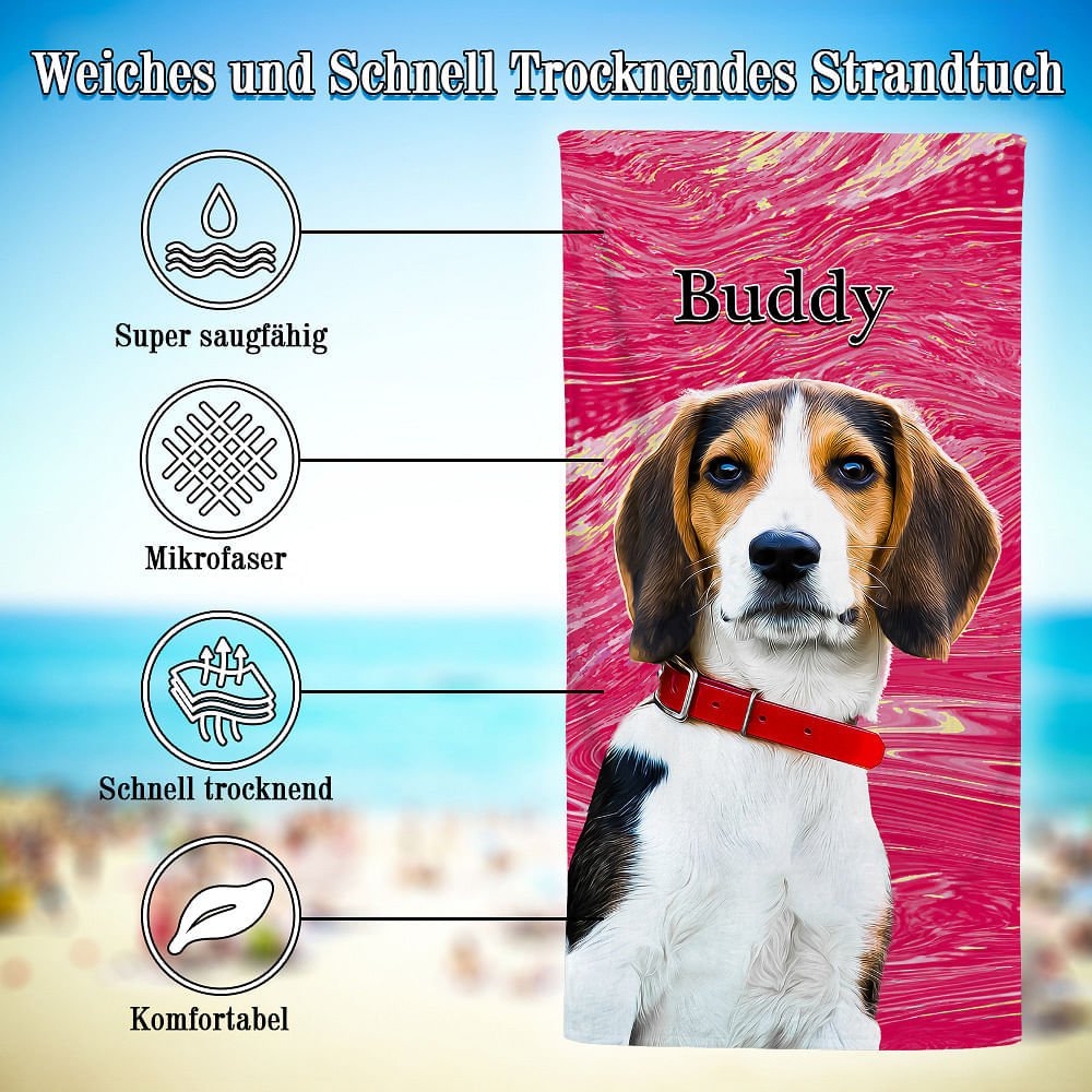 Sie können ein Foto Ihres geliebten Haustieres hochladen, einen Stil aus Ölgemälden oder reinen Farbstilen wählen und Namen hinzufügen, sodass Ihr Strandtuch ein wirklich exklusives Geschenk wird, um Ihre tiefe Zuneigung zu Ihrem Haustier zu zeigen.