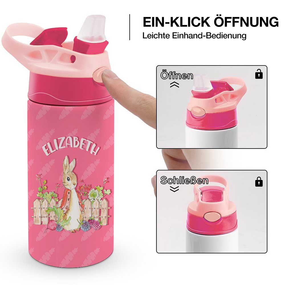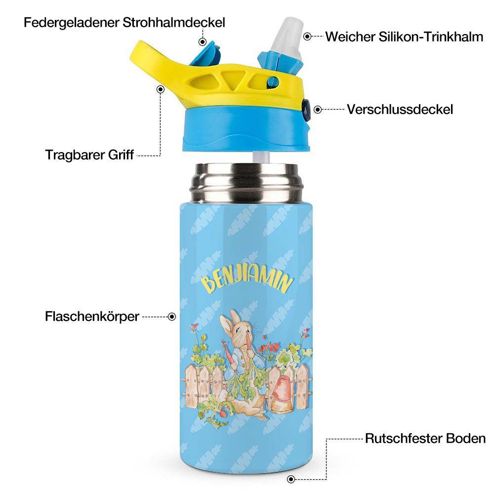 Unsere Thermoskanne für Kinder hat niedliche und schöne Muster und helle Farben. Peter Rabbit Wasserflasche für Mädchen und Jungen, Kinder, die dieser Wasserflasche besitzen, werden ihn lieben.