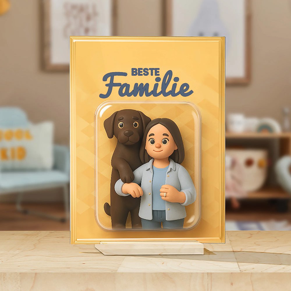 Diese Acryltafel basiert auf dem von Ihnen hochgeladenen Foto und stellt die charakteristische Pose der abgebildeten Person oder Figur detailreich nach – mit einem beeindruckenden dreidimensionalen Effekt, als würde das Motiv direkt aus dem Bild herausspringen. Ob Familienmoment, süßes Haustierfoto oder romantische Paaraufnahme, das Motiv wird lebendig und künstlerisch in Szene gesetzt. Mit Ihrem individuellen Titeltext entsteht ein persönliches und bedeutungsvolles Erinnerungsstück.
