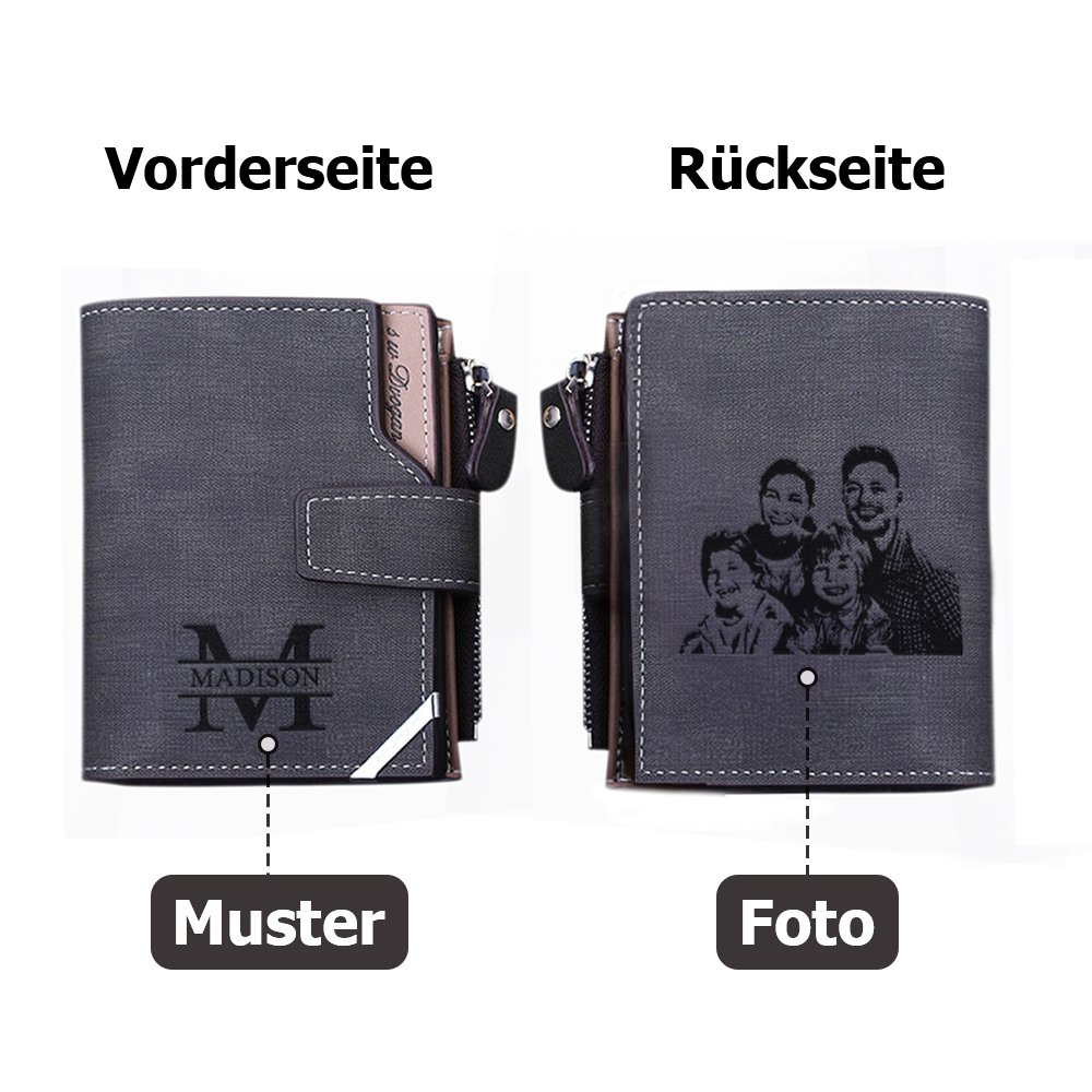 Diese Geldbörse für Herren hat 3 verschiedene Farben. Sein Design ist einfach und beständig, die Vorderseite der Geldbörse kann mit einem Namen bedruckt werden, und die Rückseite kann mit einem Foto nach Ihren Wünschen bedruckt werden. Das macht sie noch spezieller.