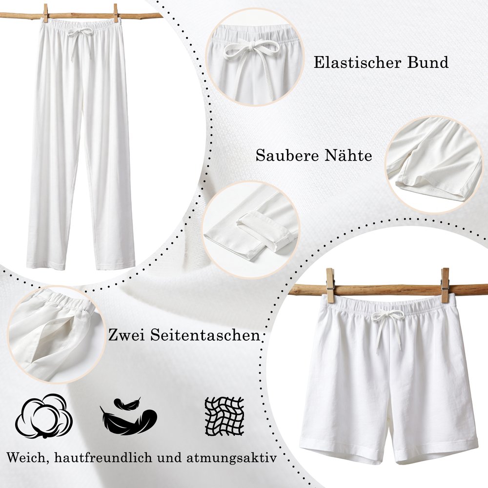Dieses Set fügt sich nahtlos in die tägliche Routine zu Hause ein. Tragen Sie es für faule Wochenenden, gemütliche Abende oder zum Schlafen – die vielseitigen Stile passen sich der Sommerhitze oder der Winterkälte an. Es eignet sich auch als süßes Outfit für Verabredungen zu Hause und verbindet Komfort mit Ihrer einzigartigen Geschichte.