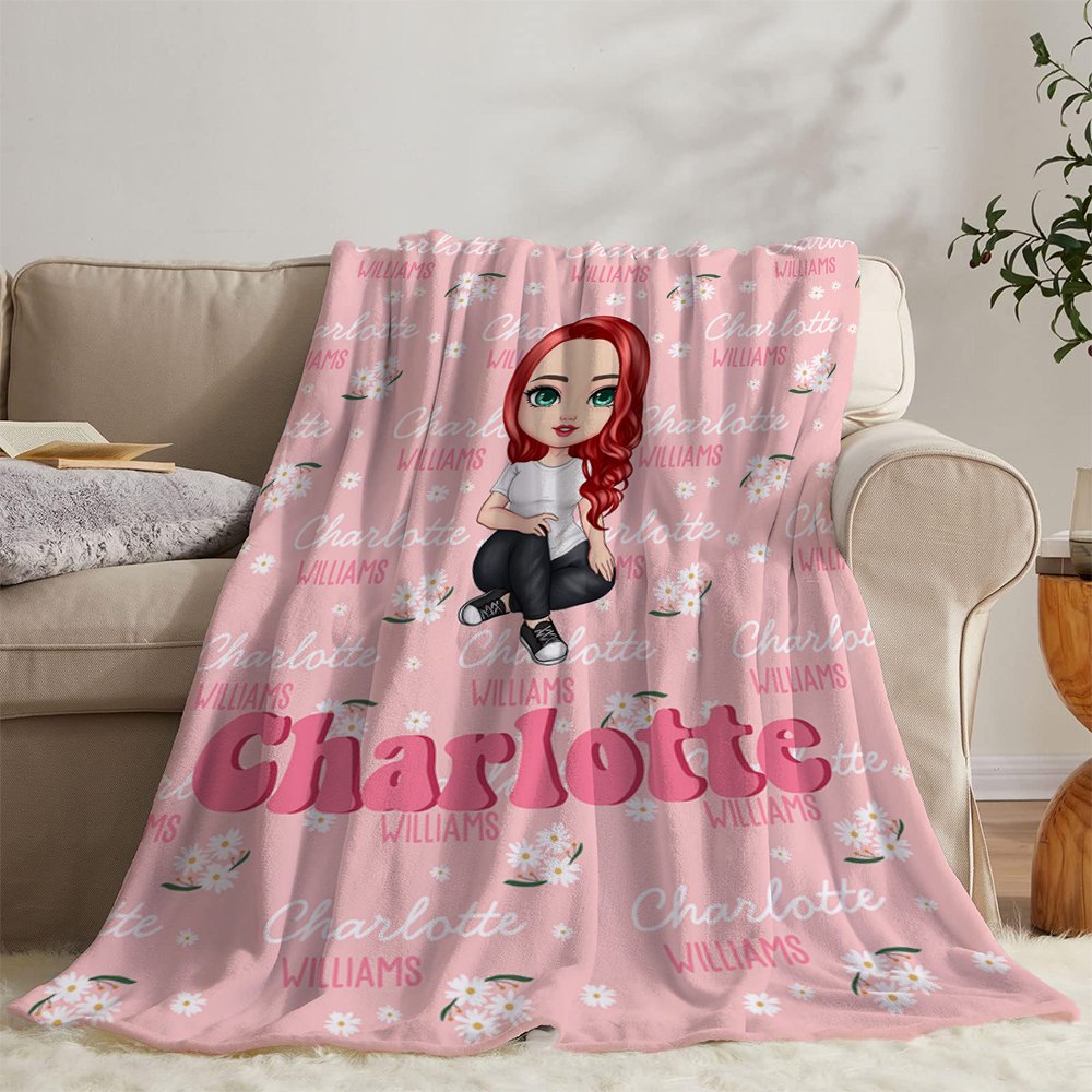 Das rosafarbene Gänseblümchenmuster bildet einen sanften und charmanten Hintergrund, der ein Gefühl von Frühling und Frische hervorruft. Zusammen mit den reizenden Cartoon-Figuren bildet es eine visuell ansprechende Kombination. Jede Zeichentrickfigur ist aufwändig gestaltet, mit lebendigen Ausdrücken und reizenden Körperhaltungen, die einen Hauch von Verspieltheit und Wärme vermitteln. Es ist nicht nur eine Decke, es ist ein Kunstwerk, das jeden Raum verschönert.