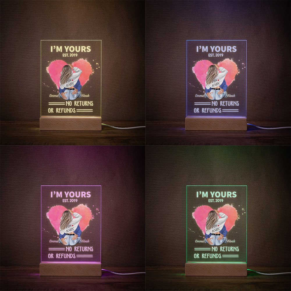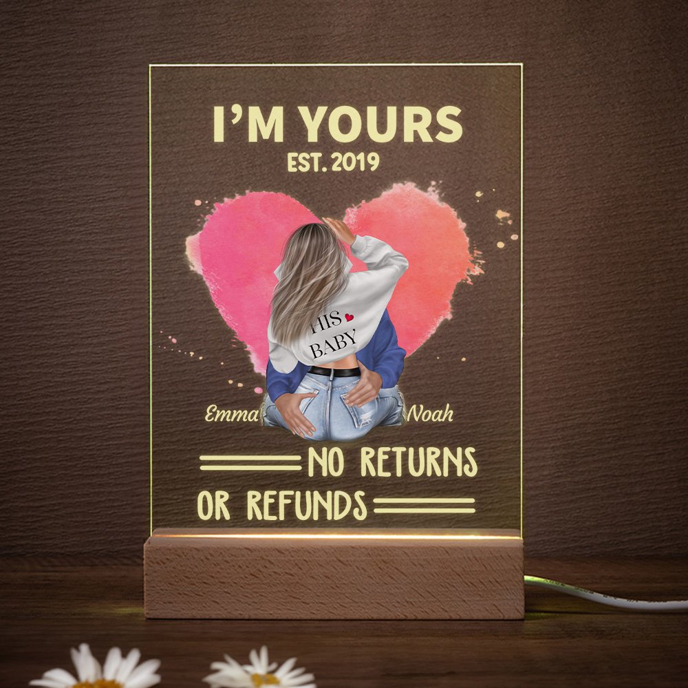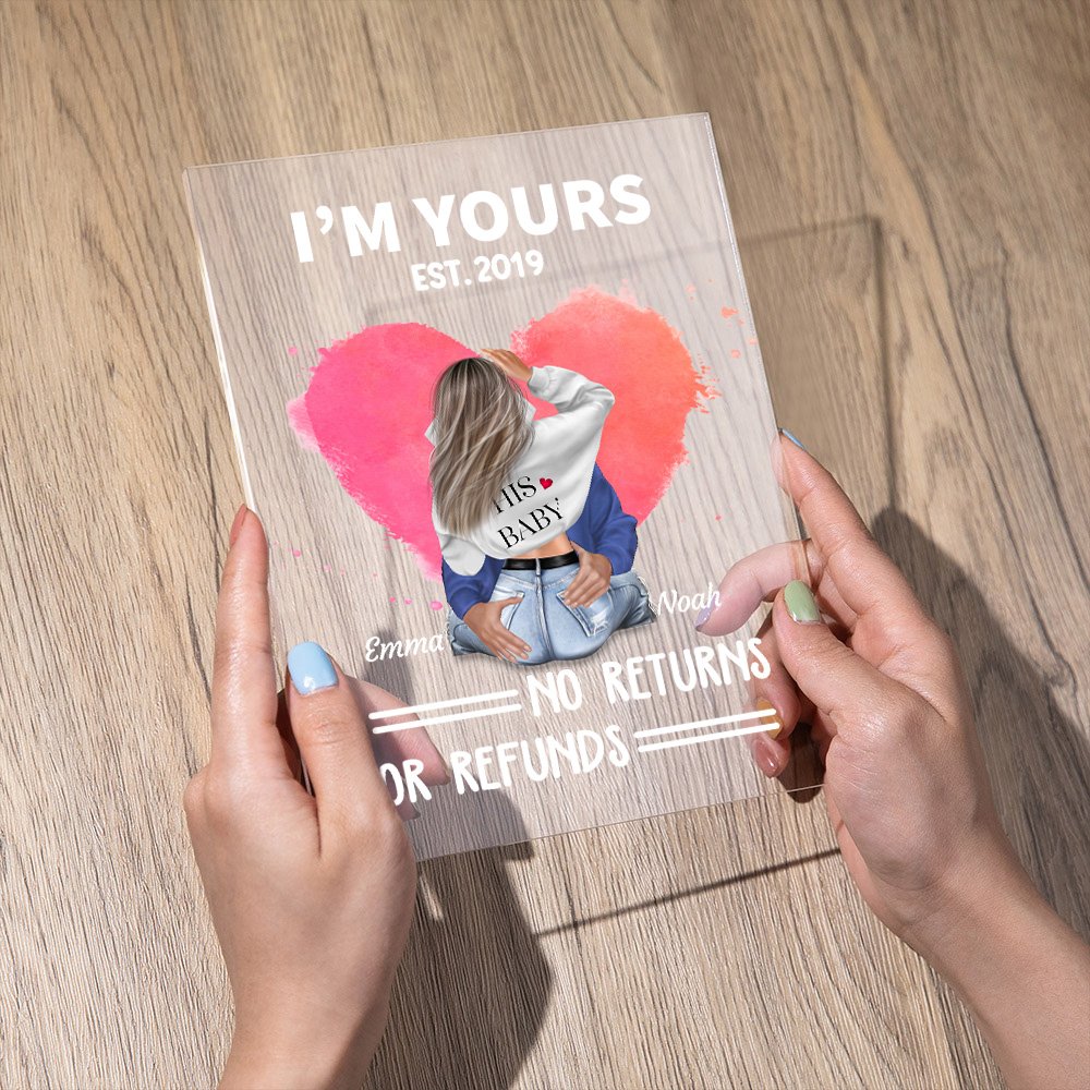 This is a couple-themed acrylic ornament, you can customize it according to the image of yourself and your partner to express your love to them and add some personal style and taste. The message "I Am Yours No Returns Or Refunds" is printed on the acrylic ornament to cherish the love story between you and your lover.