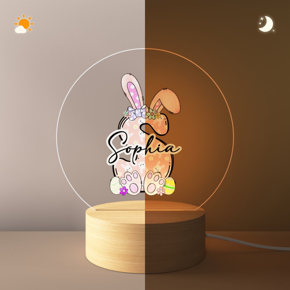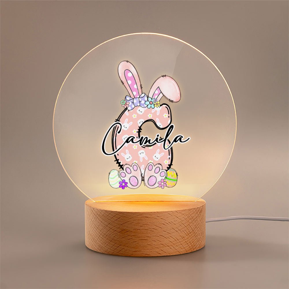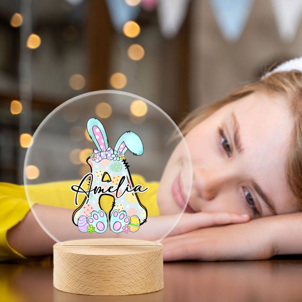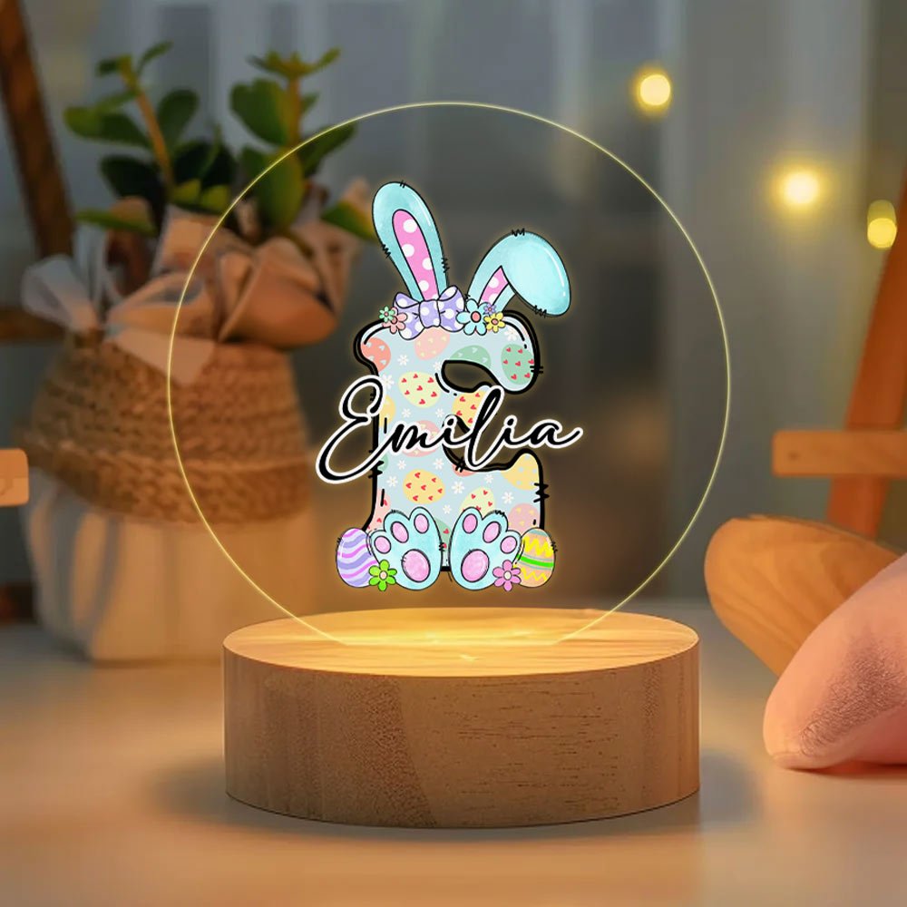 Inspiriert von niedlichen Hasenohren, Schleifen und Eiern, versprüht dieses LED-Nachtlicht einen verspielten Charme und festliche Stimmung. Sie haben die Wahl zwischen zwei verschiedenen Designs und können es auch mit Ihrem Namen versehen, um es in ein einzigartiges und exklusives Dekorationsstück zu verwandeln. Egal, ob es ein Zimmer erhellt oder die Atmosphäre eines Osterfestes unterstreicht, dieses Nachtlicht bietet ein reizvolles visuelles Erlebnis und verleiht dem Kinderzimmer einen Hauch von Magie.