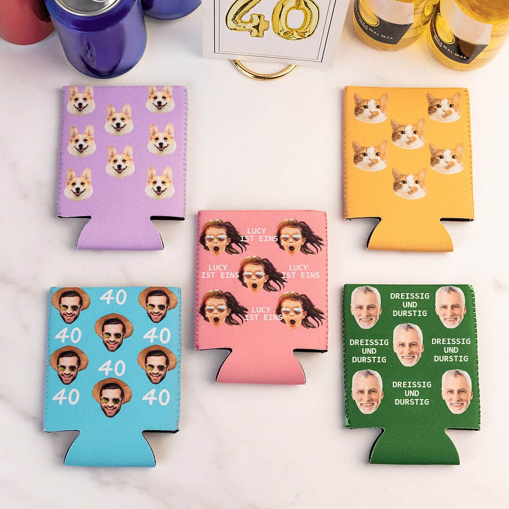 Die Dosenkühler Hülle bietet einzigartige und trendige Musterdesigns. Inklusive 5 Farben für Sie. Sie können das Porträt und das Alter oder den Text auf der Abdeckung anpassen, um eine einzigartige und charmante Dose Zubehör zu schaffen. (HÄNDE TROCKEN HALTEN): Sie passt für die meisten 330ml Bierdosen oder Softdrinks. Der Körper aus Polyurethan hält Ihr erfrischendes Kaltgetränk kühler und länger und hält Ihre Hände trocken. (EINFACH ZU BENUTZEN): Schieben Sie Ihr Getränk in die Hülle und schon können Sie Ihr isoliertes Getränk genießen. Einfaches An- und Ausziehen und Zusammenfalten zur einfachen Aufbewahrung. Sie lassen sich flach zusammenfalten und überallhin mitnehmen, wo Sie sie brauchen. (GESCHENKANLÄSSE): Die Dosen-Kühlhülle ist ein tolles Geschenk für Ihre bierliebenden Freunde oder verwenden Sie sie für Hochzeiten, Partygeschenke, Picknicks, Strand, usw.