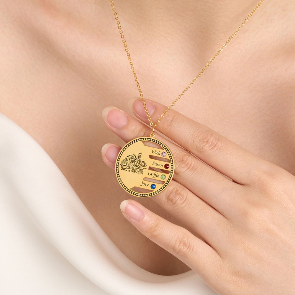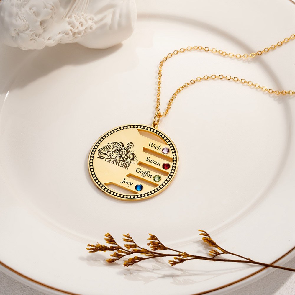 Personalisierte Portrait-Halskette mit Namen Foto Anhänger Halskette Birthstone Schmuck Familie Keepsake Geschenk für Geburtstag Jahrestag Muttertag
