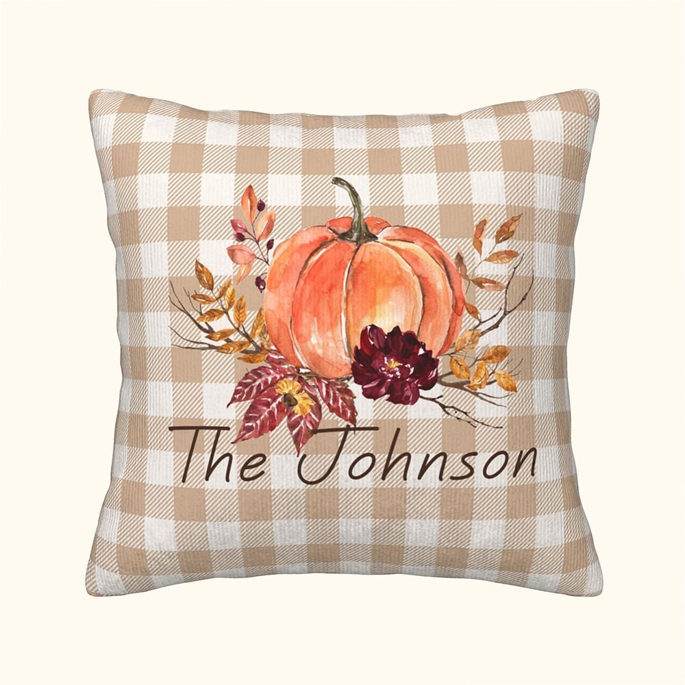 Dieser personalisierte Kissenbezug kann in verschiedenen Umgebungen verwendet werden, z. B. in Wohn- und Schlafzimmern oder im Freien. Das vom Herbst inspirierte Kürbisdesign eignet sich für saisonale oder ganzjährige Dekorationen.