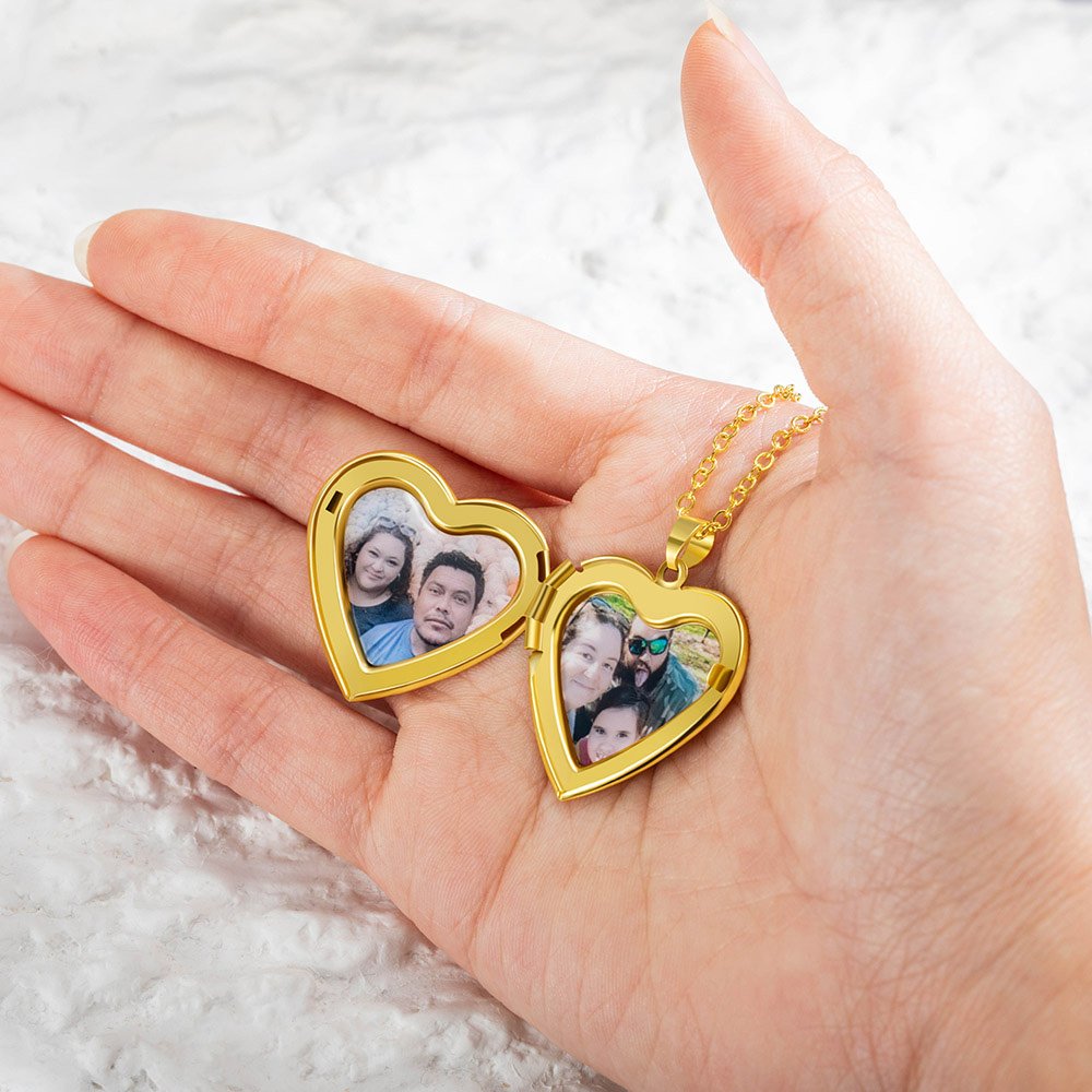 Die Foto-Halskette Locket lässt sich öffnen, um einen Platz für ein Foto freizugeben. Dieses herzförmige Medaillon-Halsband verfügt über zwei innere Fotofenster, in die Sie bis zu 2 Fotos einfügen können. Egal, ob es sich um ein Foto Ihres Partners, eines Familienmitglieds oder Ihres geliebten Haustiers handelt, diese Halskette wird sicher zu einem wertvollen Andenken.
