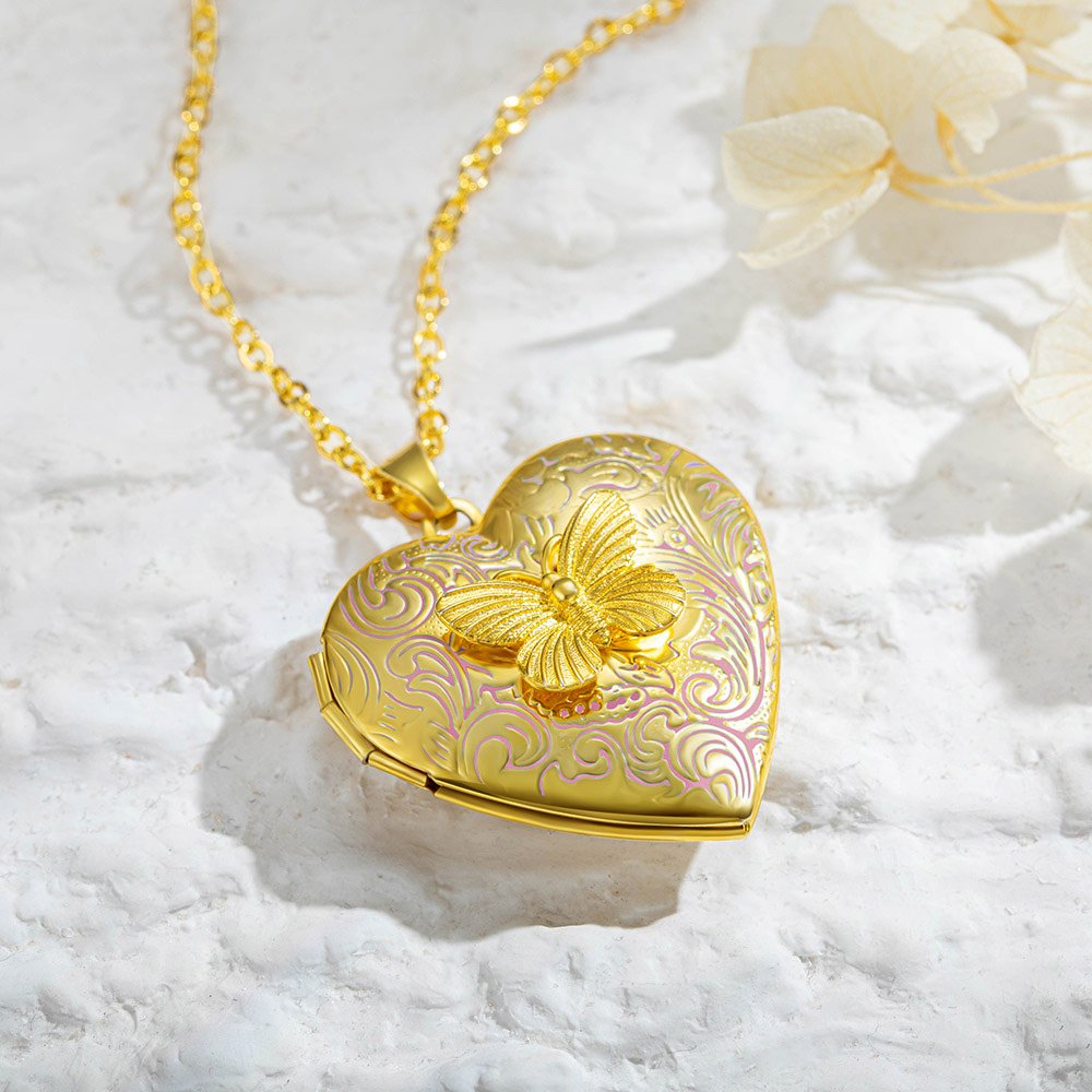 | Merkmale: | Nicht rostend, robust, Schmetterling in Herzform, Foto-Halskette |