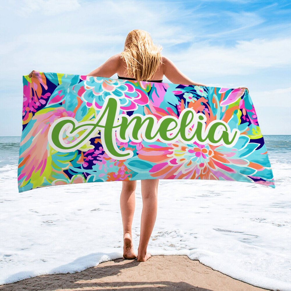 Der personalisierte Name des Strandtuchs wird mit Schriftoptionen und hellen Wellenmustern wunderschön dargestellt. Das Strandtuch repräsentiert Ihre einzigartige Identität und zieht die Aufmerksamkeit aller auf sich, wodurch Sie sich von der Masse abheben. Sie können aus einer Vielzahl von Farben wählen, um Ihre bevorzugten Bedürfnisse zu erfüllen.