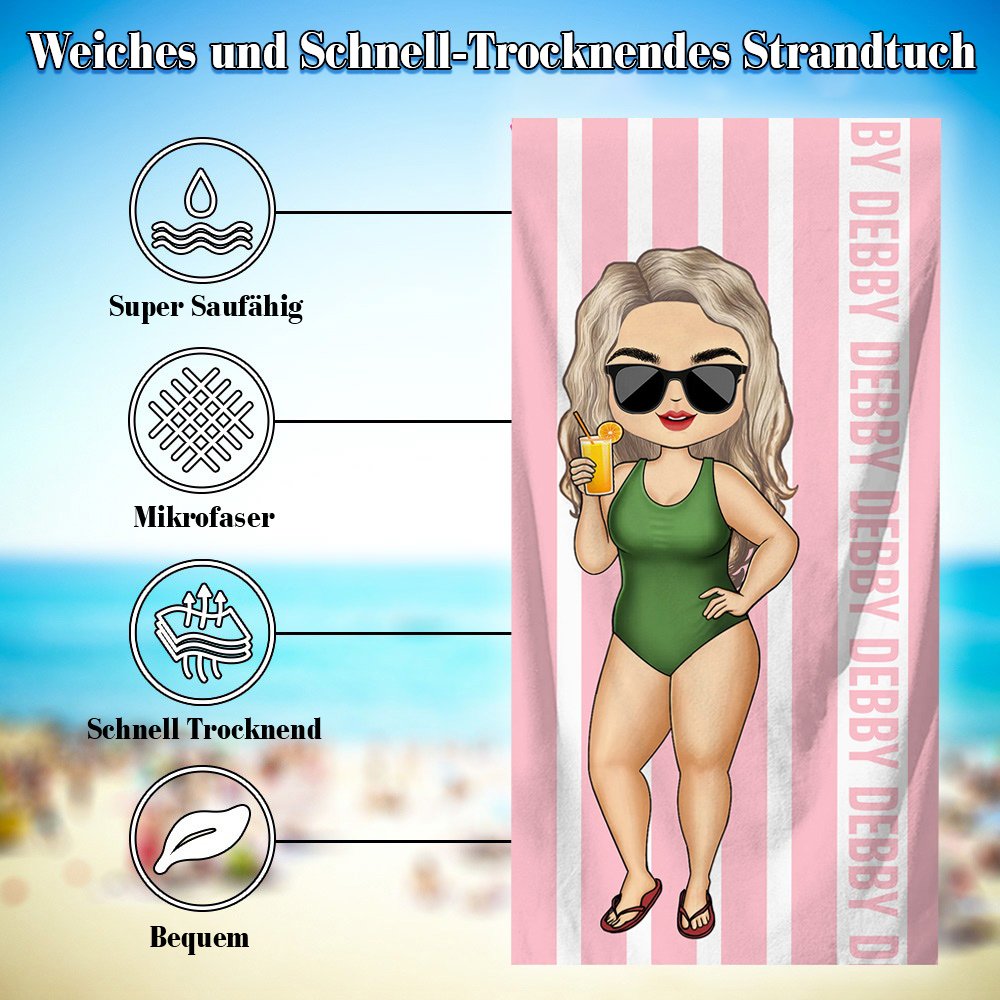 Dieser personalisierte Charakter-Cartoon ist mit einem klassischen gestreiften Strandtuch gepaart, und das Spaß-Charakterbild und die hellen Farben können die Stranderfahrung verbessern. Das anpassbare Namensdesign ermöglicht es Ihnen, sich von der Masse abzuheben und genießen Sie die Begeisterung des Sommers.