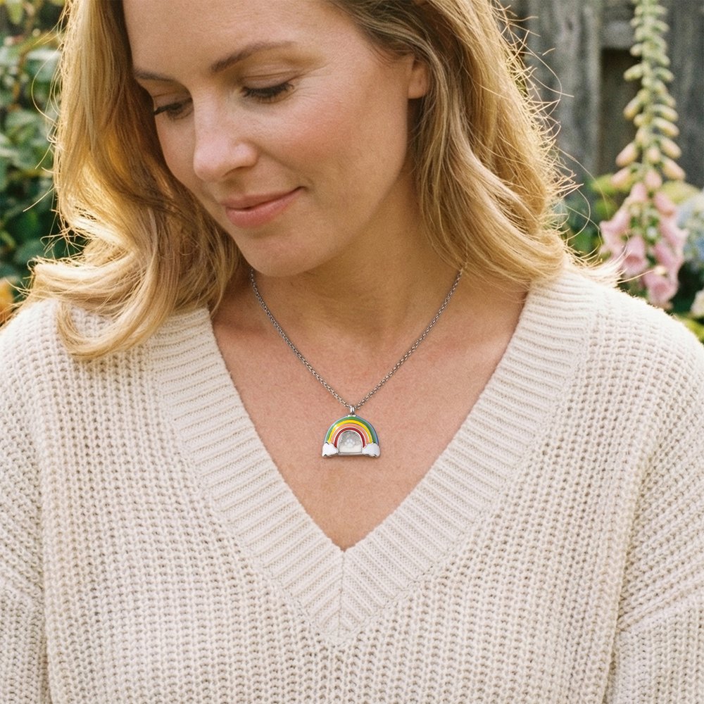 Diese Gedenkkette für Haustiere ist das perfekte Beileidsgeschenk für alle Tierfreunde in der Zeit des Verlustes. Möge Ihr Herz wissen, dass Ihr Haustier in Frieden ist und auf Sie an der Regenbogenbrücke wartet.