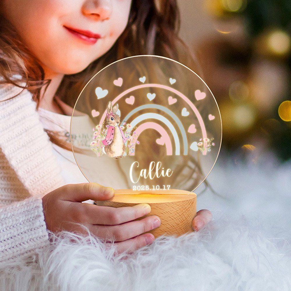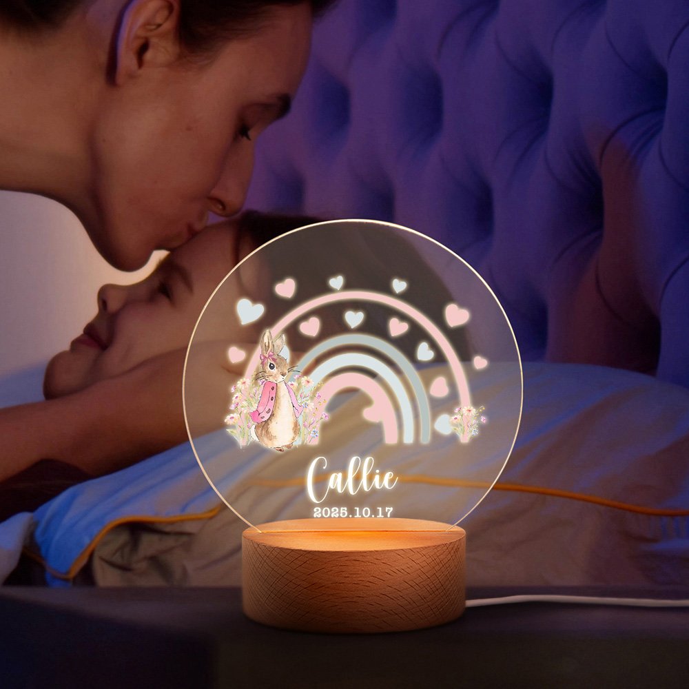 | Merkmale: | Nicht verblassend, LED-Nachtlicht, Namensanpassung, Regenbogen-Peter-Hase-Design |