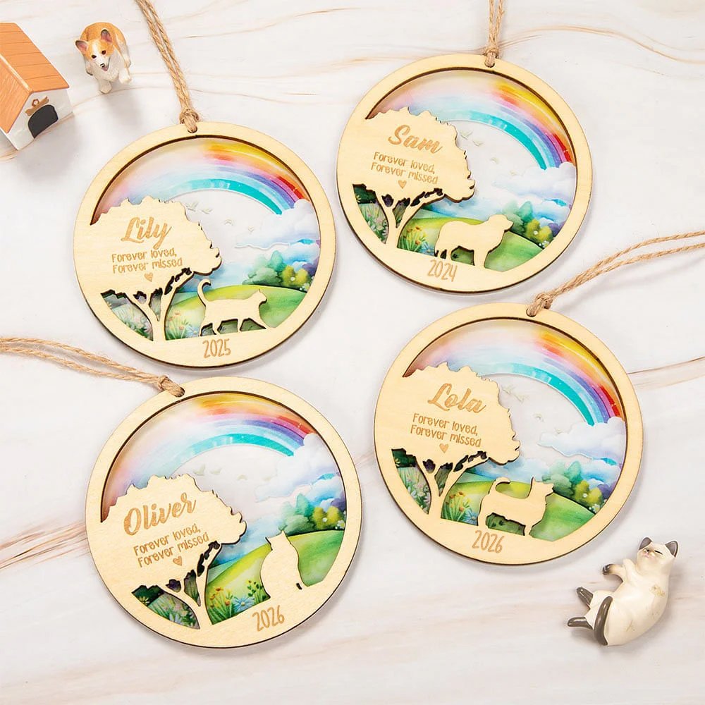 Dieser Anhänger verfügt über ein hohles Design in der Mitte, das Regenbögen und wunderschöne Naturlandschaften besonders gut zur Geltung bringt. Zudem ist der Anhänger mit Baum- und Haustiermotiven graviert. Sie können aus 5 Katzendesigns und 119 Hunderassen wählen. Der Baum ist mit dem festen Text Forever loved, Forever missed versehen, um das Haustier zu ehren. Darüber hinaus können Sie den Namen und das Jahr personalisieren und so ein einzigartiges Erinnerungsstück gestalten.