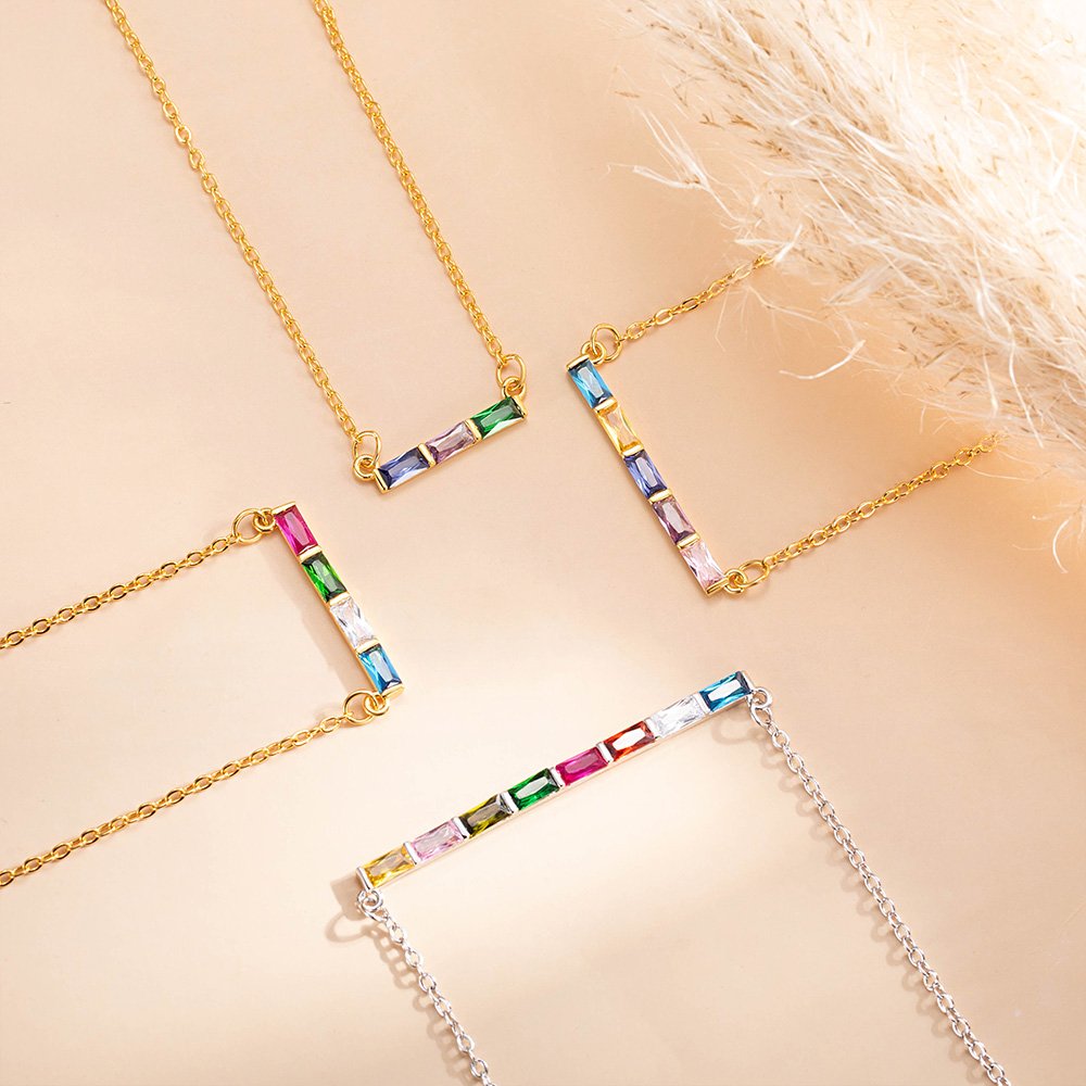 Die rechteckige Geburtsstein-Halskette hat ein einfaches und modisches Design, das sie zur perfekten Dekoration für jeden Kleidungsstil macht. Sie können zwischen 1-8 Geburtssteinen wählen. Jeder Geburtsstein kann Ihre Familie, Freunde oder Ihren Partner repräsentieren und macht die Halskette einzigartig.