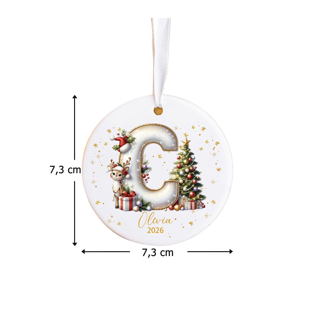 Dieser wunderschön gestaltete Keramik-Anhänger zeigt eine festliche Initiale, geschmückt mit einem niedlichen Rentier und einem Weihnachtsbaum. Sie können ihn mit Ihrem Namen und dem Jahr personalisieren – ein liebevolles Symbol der Weihnachtszeit.