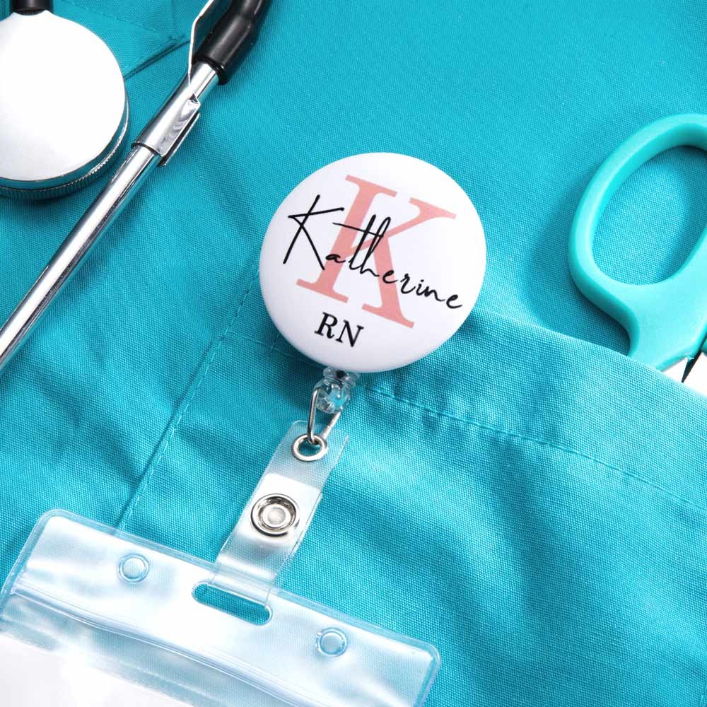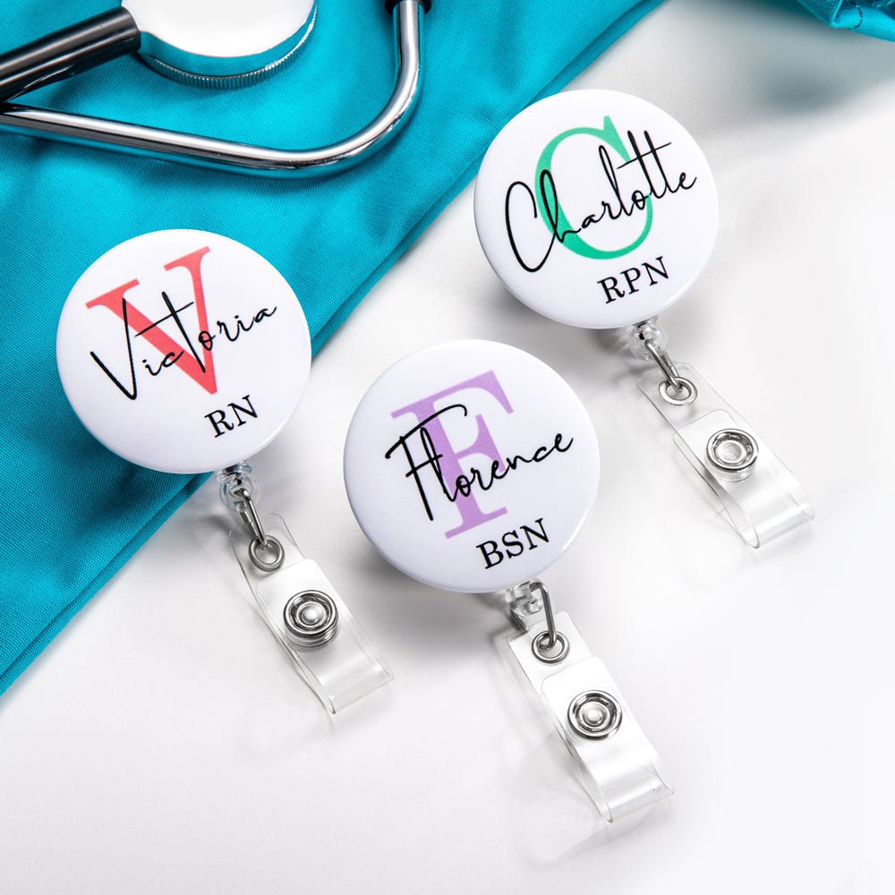 Unsere Badge Reels sind in zwei Ausführungen erhältlich, eine hat einen Metallclip auf der Rückseite, Sie können seine Position jederzeit leicht einstellen und es fest am Kragen, Taschen und Taschen befestigen. Der andere ist speziell für Stethoskope gedacht, Sie können ihn direkt an das Stethoskop schnallen. So können Sie Ihr Stethoskop auf einzigartige Weise personalisieren und verlieren nie wieder Ihr Stethoskop!