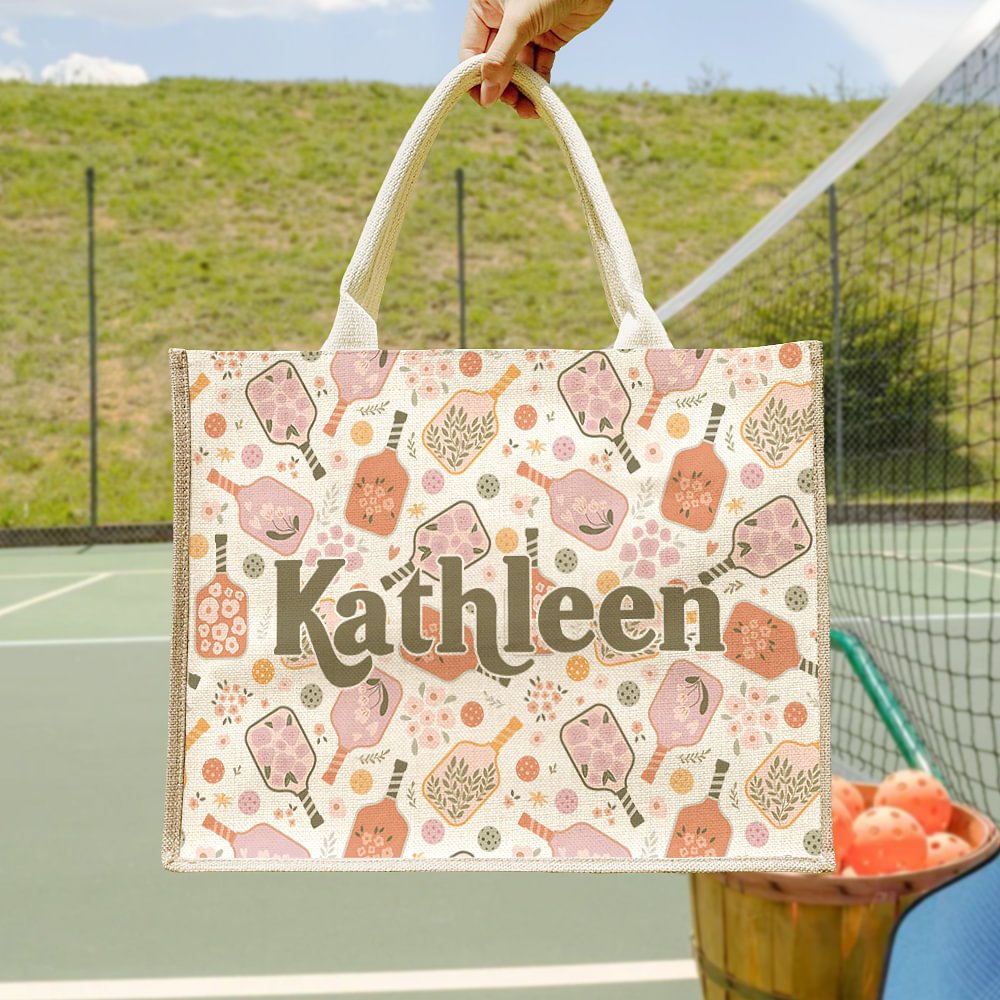 Der geräumige Innenraum und die robuste Konstruktion bieten Platz für alle wichtigen Dinge, die man für einen Tag Pickleball braucht - von zusätzlichen Schlägern und Bällen bis hin zu Wasserflaschen und Snacks. Die stabilen Griffe und der verstärkte Boden sorgen dafür, dass die Tasche auch schwere Lasten problemlos bewältigen kann, was sie zum perfekten Begleiter für jeden Pickleball-Enthusiasten macht. (DURCHDACHTES GESCHENK): Diese Jutetasche ist ein Geschenk für jede pickleballbegeisterte Frau. Ob zum Geburtstag, zu einer Mannschaftsfeier oder einfach nur, um Ihre Wertschätzung zu zeigen, dieses einzigartige und personalisierte Set wird die Empfängerin sicherlich begeistern und inspirieren, ihre Pickleball-Träume weiter zu verfolgen.
