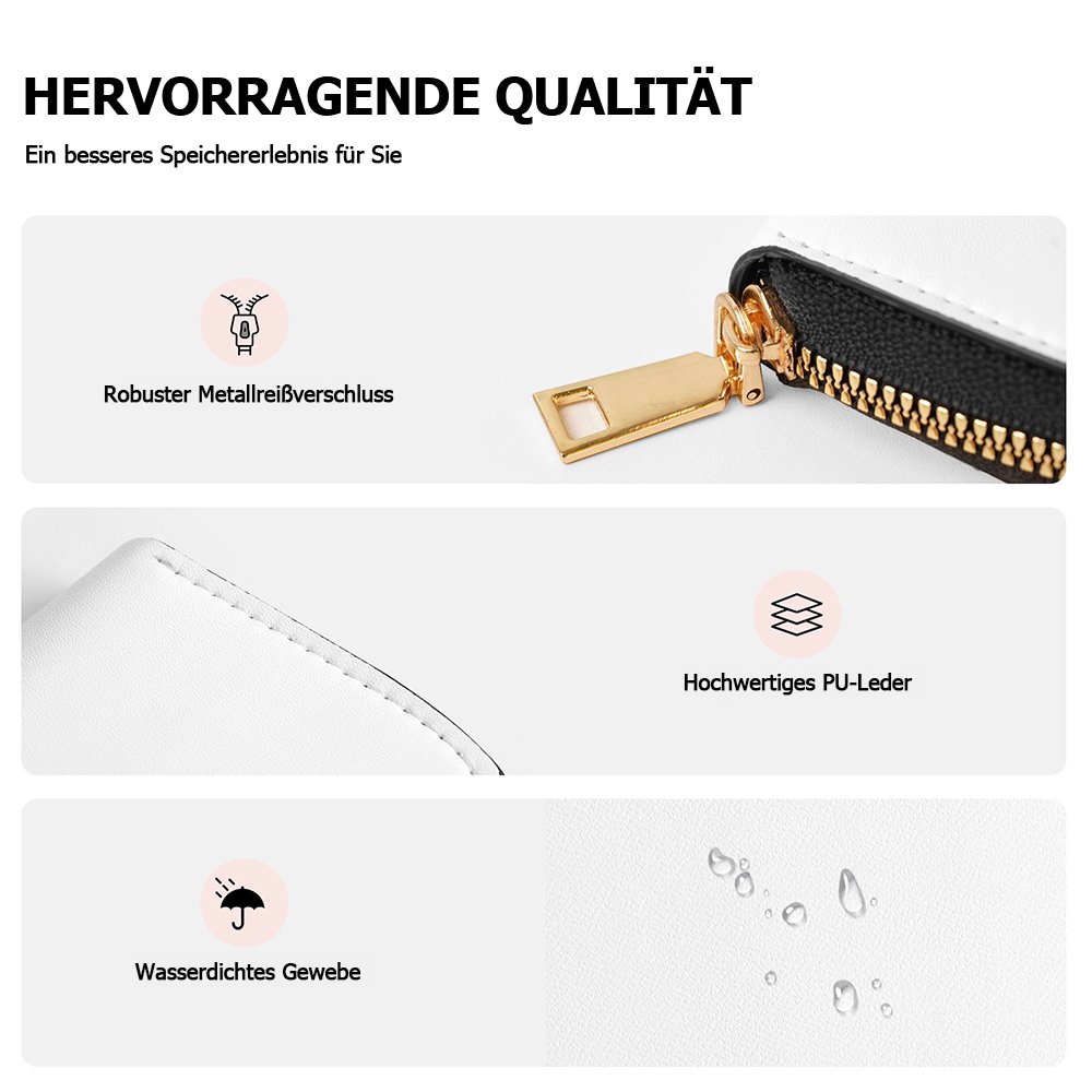 Diese Geldbörse aus hochwertigem PU-Leder fühlt sich weich an, ist langlebig und pflegeleicht. Das wasserdichte und umweltfreundliche Material garantiert eine lange Lebensdauer und bietet ein luxuriöses Gefühl, ohne die Nachhaltigkeit zu beeinträchtigen.