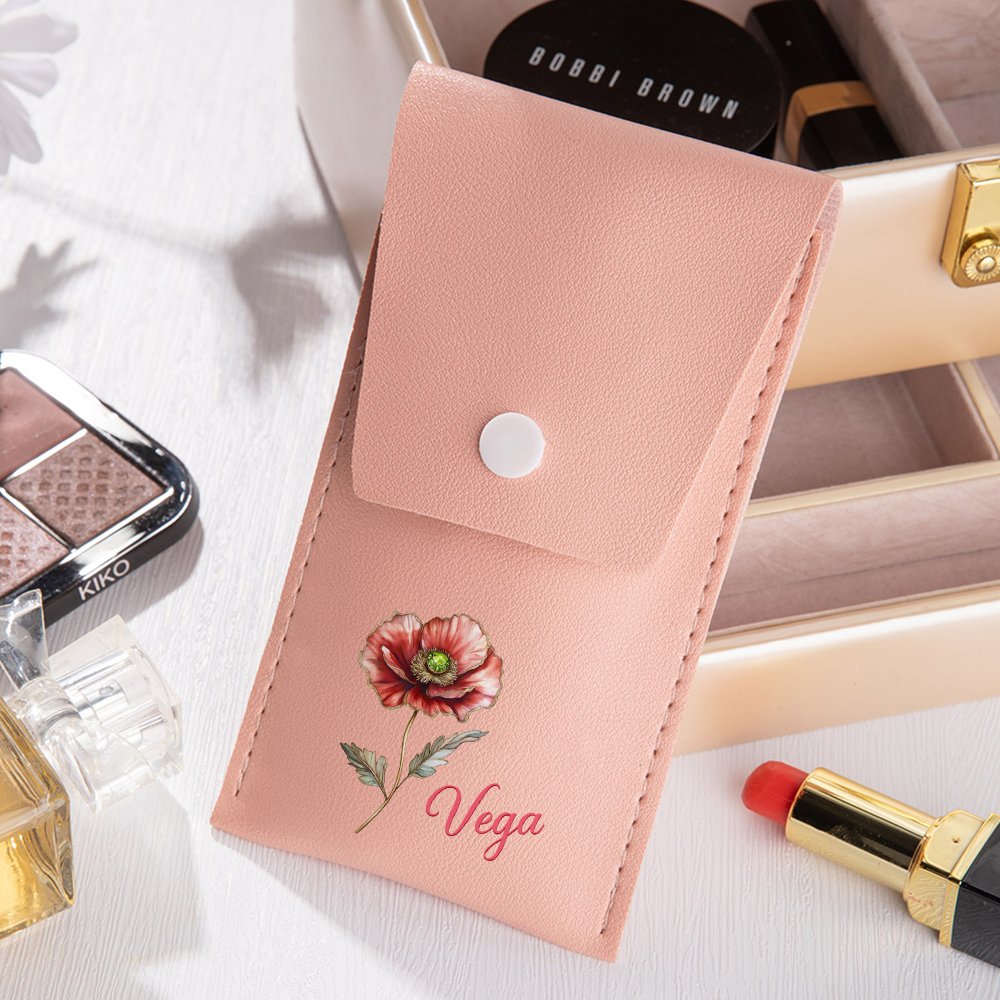 Die Vorderseite dieser Make-up-Pinseltasche ist mit einem Blumenmuster im Stil der Ölmalerei verziert, das einen Vintage-Glanz hat, und mit einer glänzenden Bordüre und Edelsteinen elegant verziert ist. Sie können Ihren Namen hinzufügen, um ein einzigartiges Stück zu schaffen, das Ihre Persönlichkeit widerspiegelt.