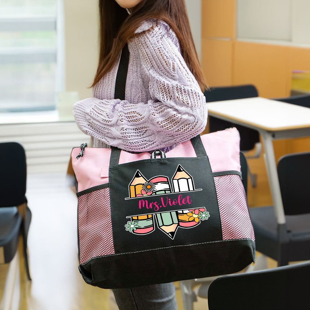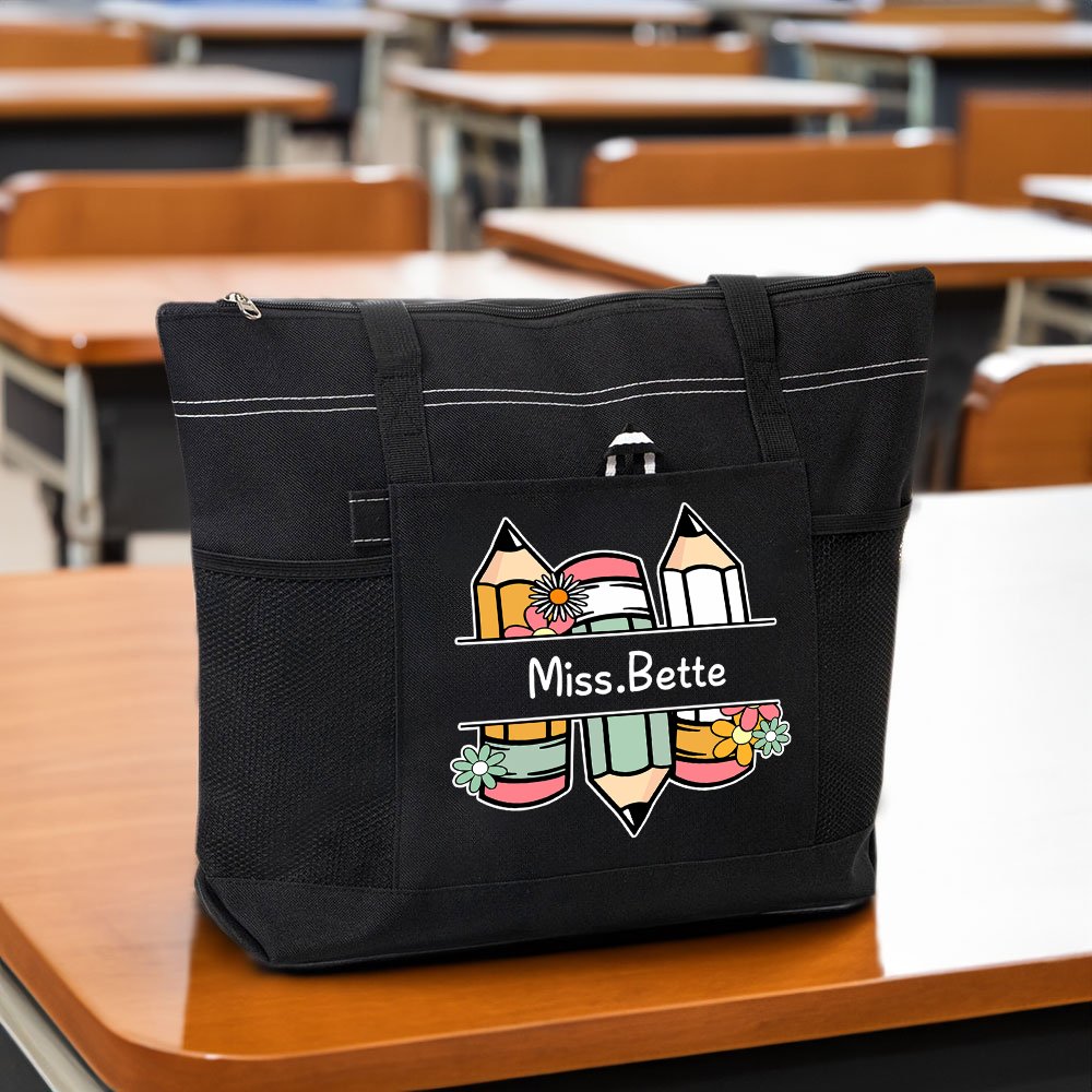 Unsere Tragetasche zeigt Bleistifte als Hauptdesignelement und ist mit Blumen gepaart, um die stille, harte Arbeit der Lehrer hervorzuheben. Du kannst den Namen deines Lehrers hinzufügen, um deine Dankbarkeit auszudrücken.