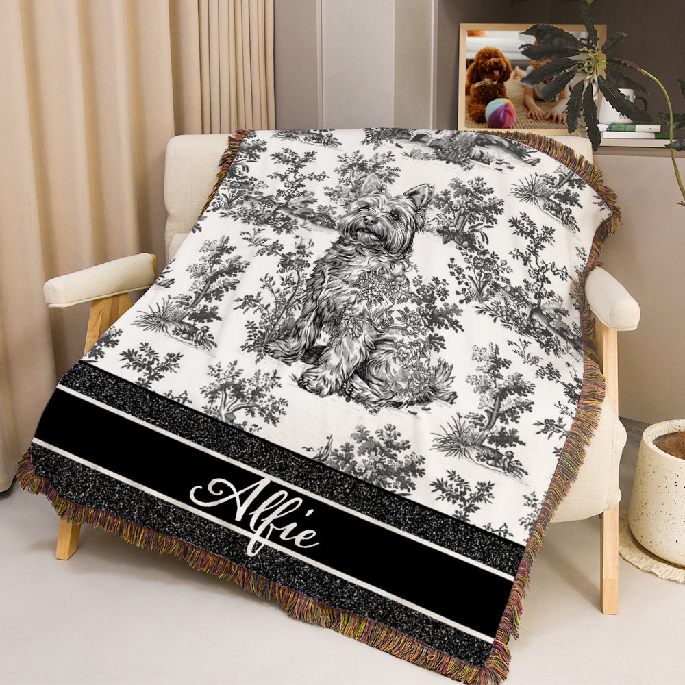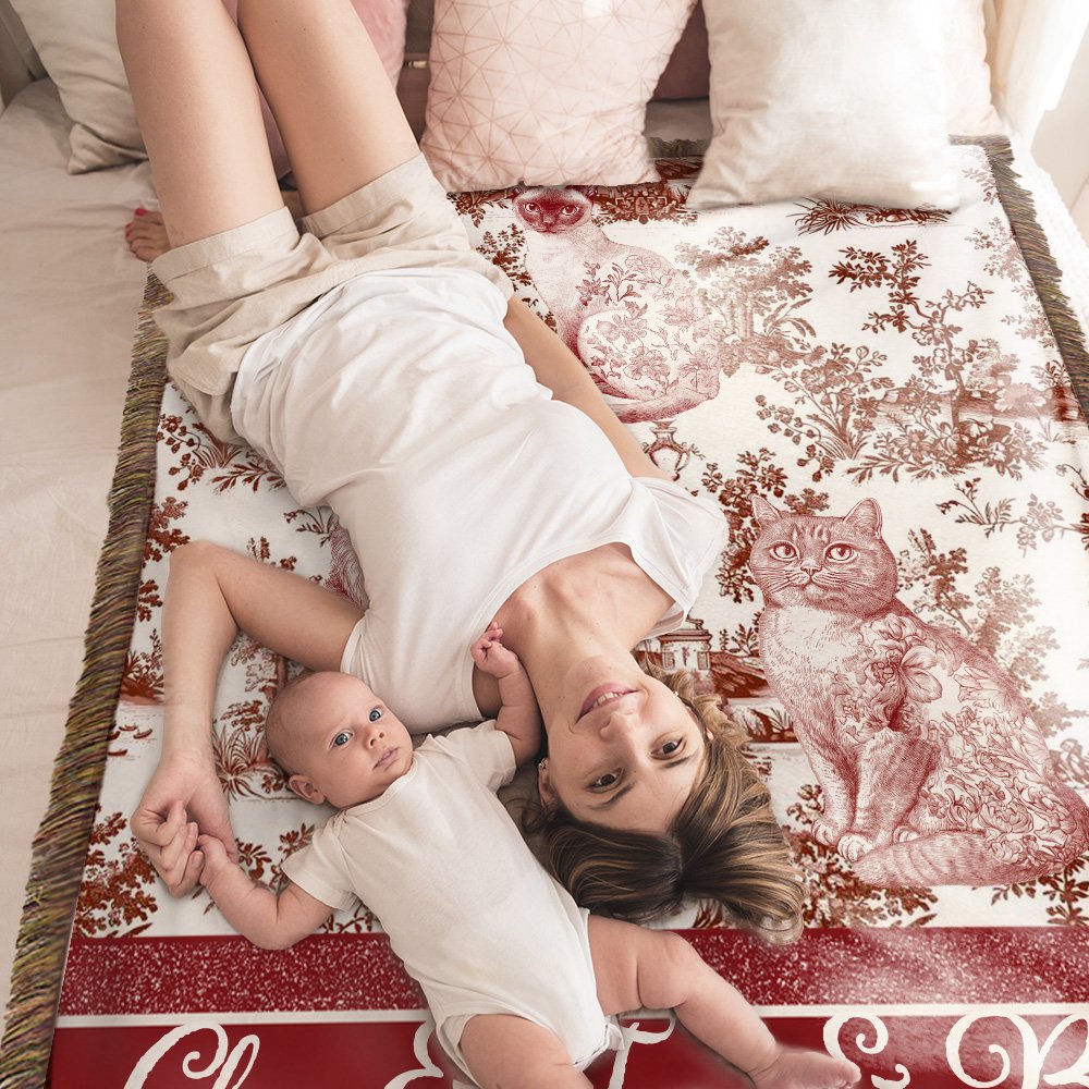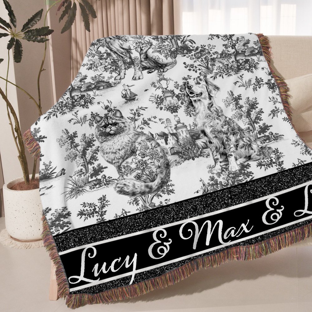 Diese Decke zeichnet sich durch ein klassisches Toile-De-Jouy-Design aus, das Eleganz und Retro-Charme perfekt mit einem künstlerischen Stil verbindet. Sie können Ihre Lieblingsfarbe wählen und 1-3 Haustierporträts anpassen, die lebensecht und lebendig sind, und Namen hinzufügen, als ob sie immer an Ihrer Seite sind und die Zeiten flüstern, die Sie zusammen schätzen.