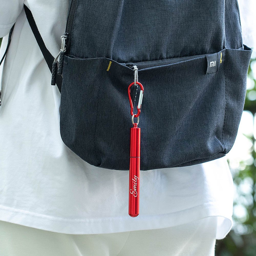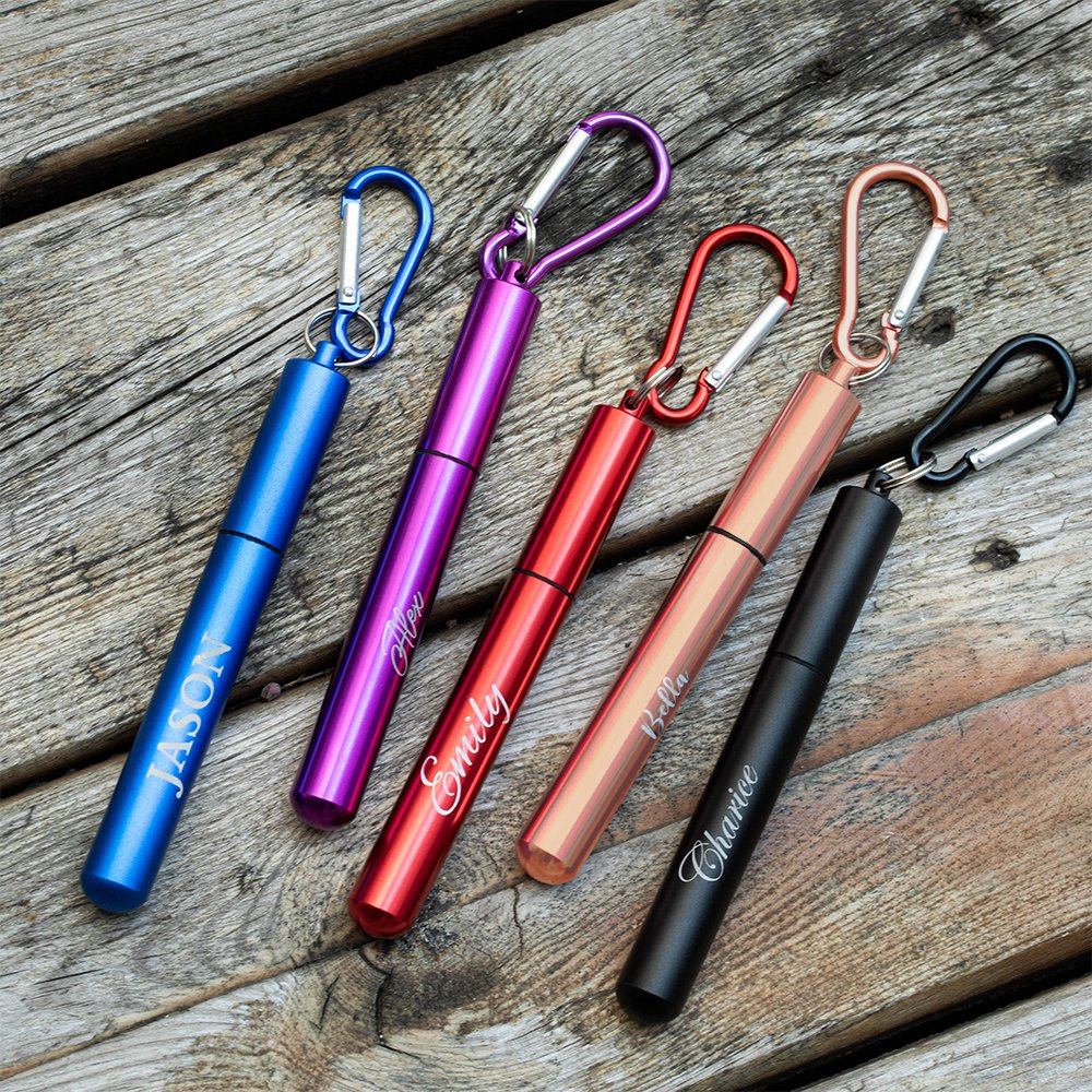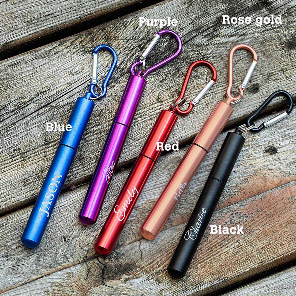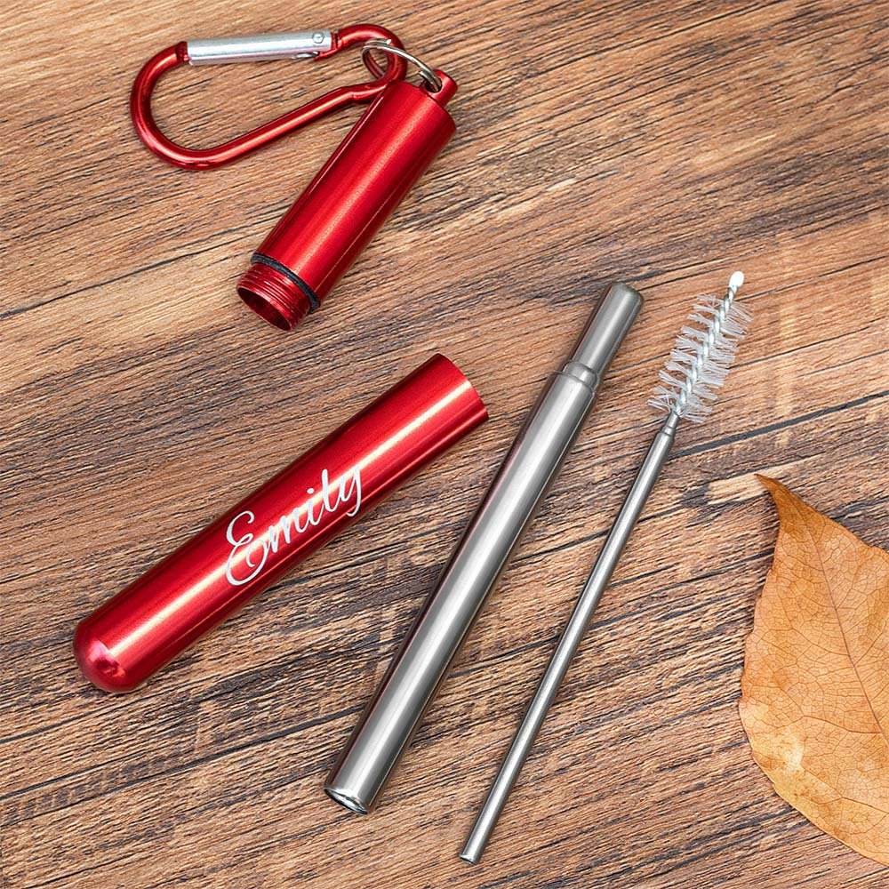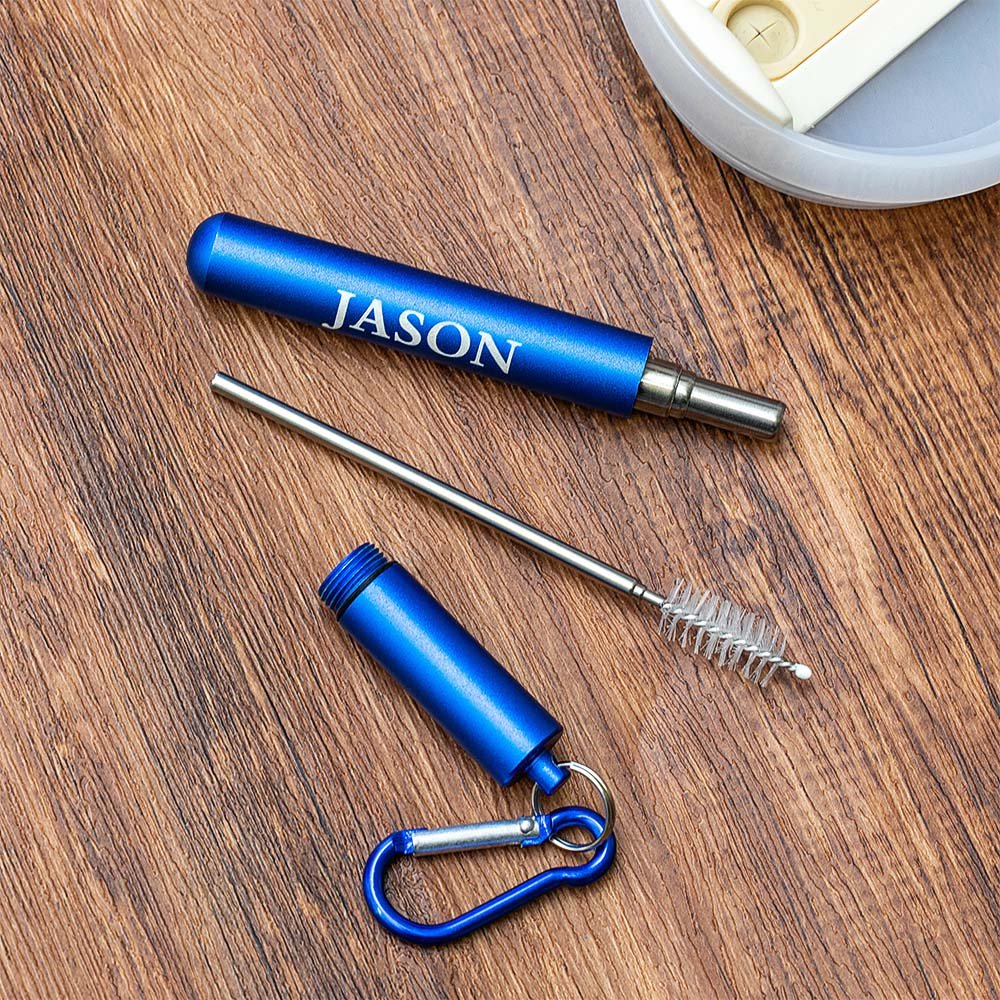 Personalisierter Wiederverwendbarer Strohhalm mit Bürste Schlüsselanhänger Teleskopischer Edelstahlhalm Tragbar Geburtstag Geschenk für Umweltbewusste