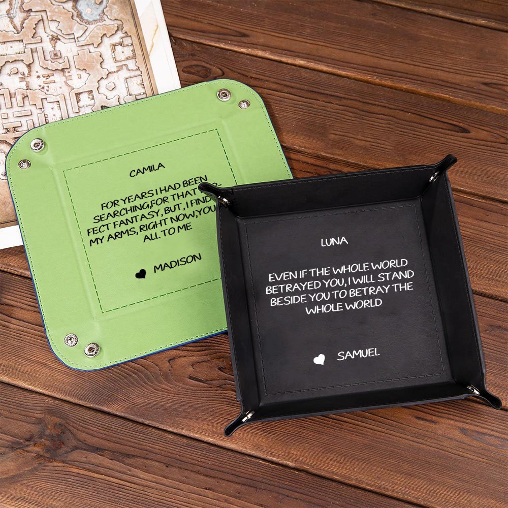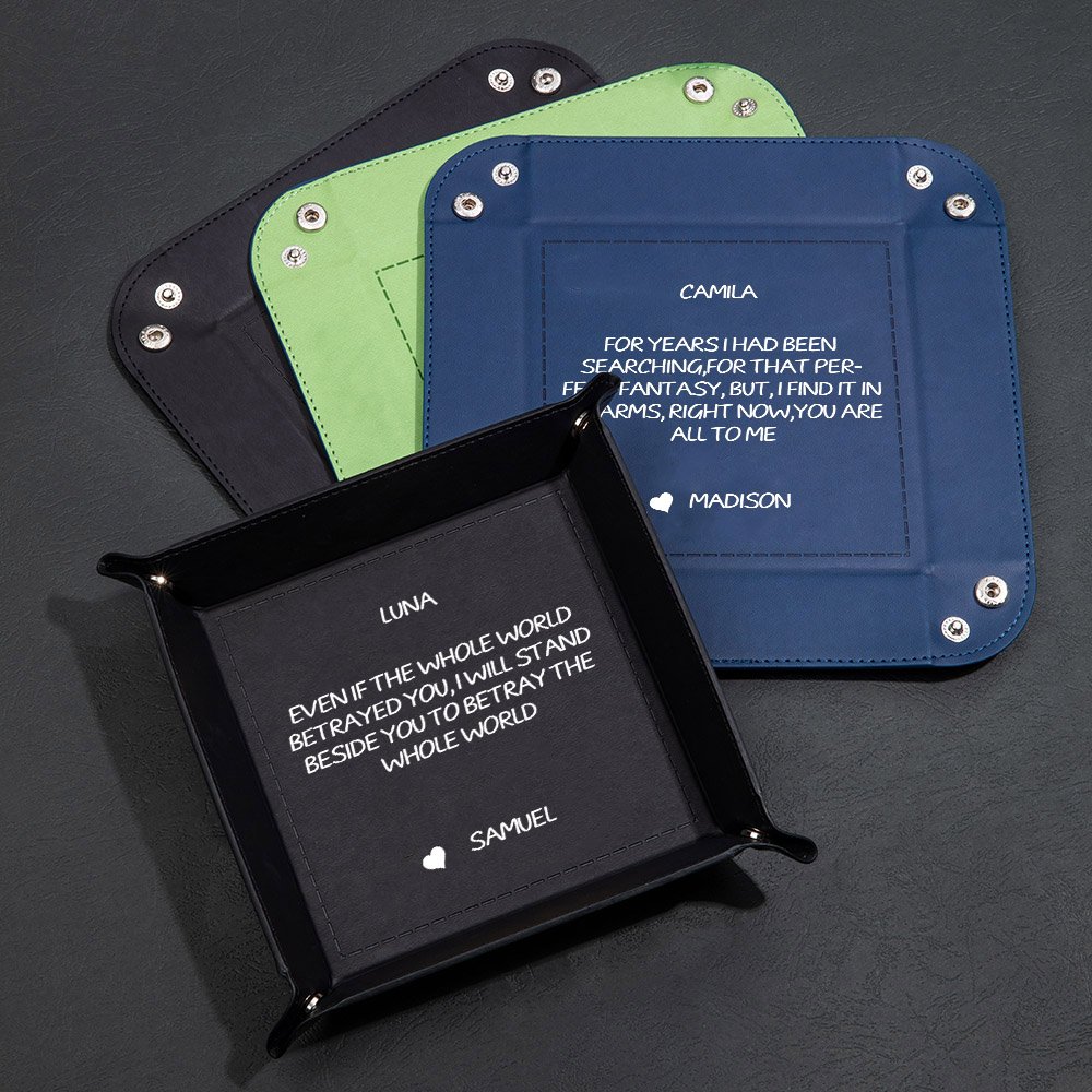 Das aus hochwertigem Kunstleder gefertigte Ledertablett ist so konzipiert, dass es dem täglichen Gebrauch standhält und dabei seinen Charme behält. Es ist eine dauerhafte Erinnerung an Ihre Liebe, perfekt für die tägliche Organisation.