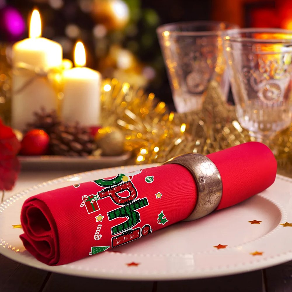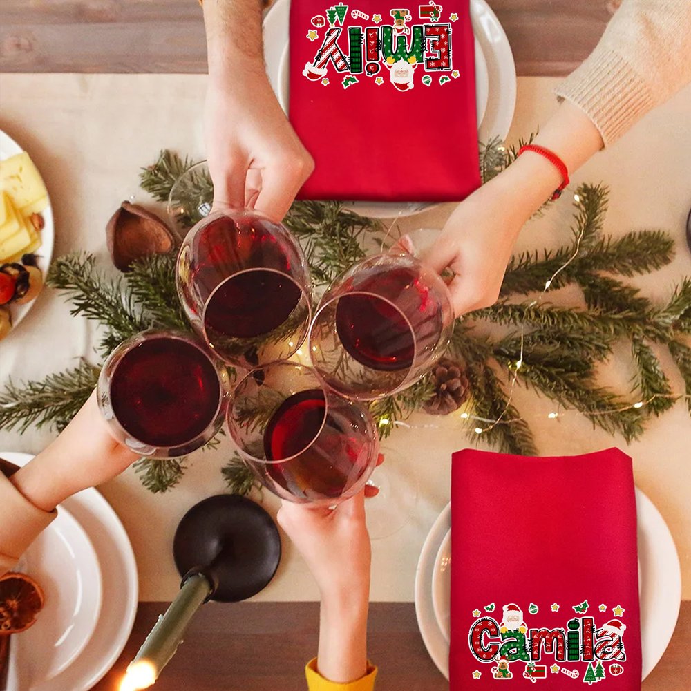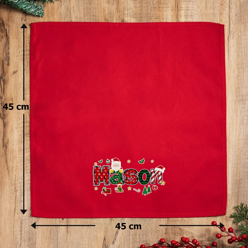 Diese Serviette in leuchtendem, festlichem Rot, geschmückt mit einem zarten Weihnachtsmann-Motiv, verleiht Ihrer Festtafel einen Hauch von zeitlosem Weihnachtszauber. Der in Weiß aufgedruckte, personalisierte Name sorgt für eine ganz besondere, elegante Note – ob es Ihr eigener Name ist oder der eines Gastes, jede Mahlzeit wird damit zu einem feierlichen Erlebnis.