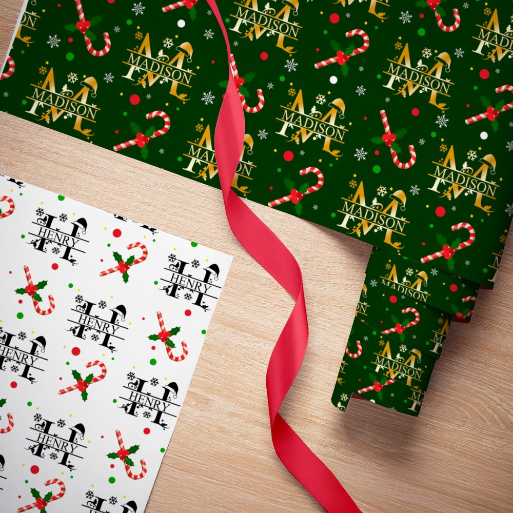 Mit Kernelementen wie Weihnachtsbuchstaben, Weihnachtsmannmützen, Zuckerstangen, Sternen und Schneeflocken, gepaart mit anpassbaren Namen, strahlt dieses Design eine warme, reichhaltige und festliche Atmosphäre aus und hebt sich von der Monotonie des gewöhnlichen Geschenkpapiers ab. Es vermittelt visuell Festtagsstimmung, während personalisierte Namen die Vorfreude auf das Auspacken jedes Geschenks steigern.
