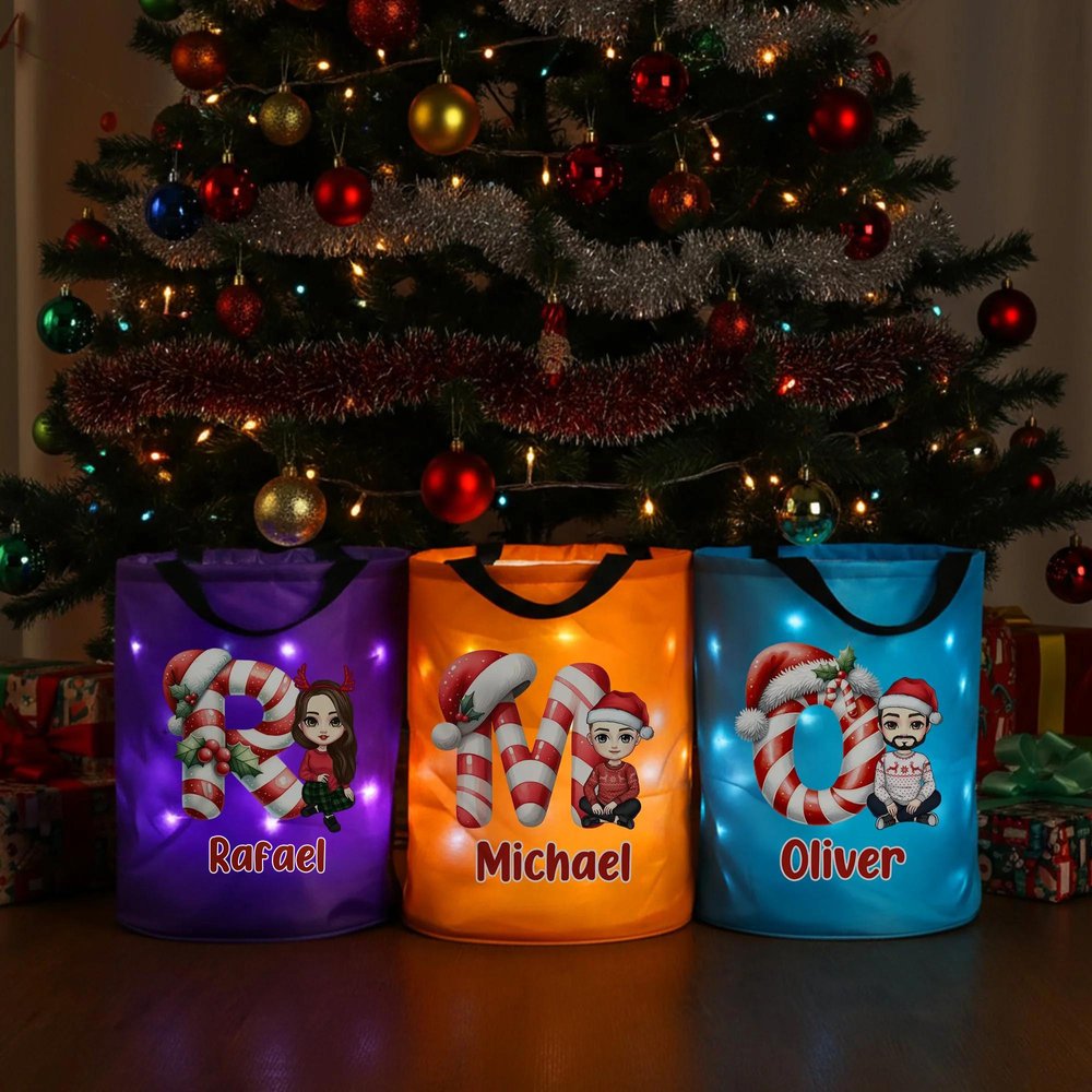 Dieser Weihnachtssack mit charmanten Cartoon-Motiven kann individuell für jede Familie gestaltet werden – von Babys über Teenager bis hin zu Senioren – und sorgt so für eine festliche Stimmung und viel Freude. Darüber hinaus haben Sie die Möglichkeit, den Weihnachtssack mit Initialen und Namen zu personalisieren, um ein ganz besonderes und persönliches Erlebnis zu schaffen. Die integrierten LED-Lichter verleihen dem Sack einen zauberhaften Glanz, der die festliche Atmosphäre unterstreicht und Kinder auf ihren Weihnachtsabenteuern begeistert.