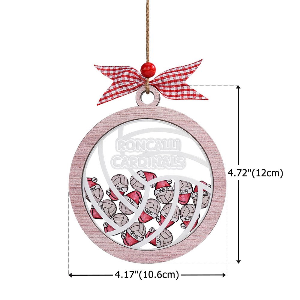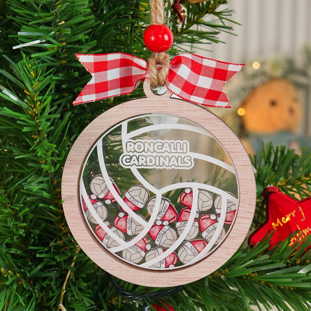 Dieses einzigartige Weihnachtsornament besteht aus mehreren Volleyball-Acrylfiguren, die eine Weihnachtsmannmütze tragen, wobei jede Acrylfigur ein Volleyball-Team-Mitglied darstellt. Sie können den Mannschaftsnamen und die Namen der Mitglieder auf ihm anpassen. Das Ornament verbindet die Weihnachtsstimmung mit der Liebe zum Volleyball und ist damit eine ideale Dekoration für Volleyball-Fans, Mannschaften und Trainer.
