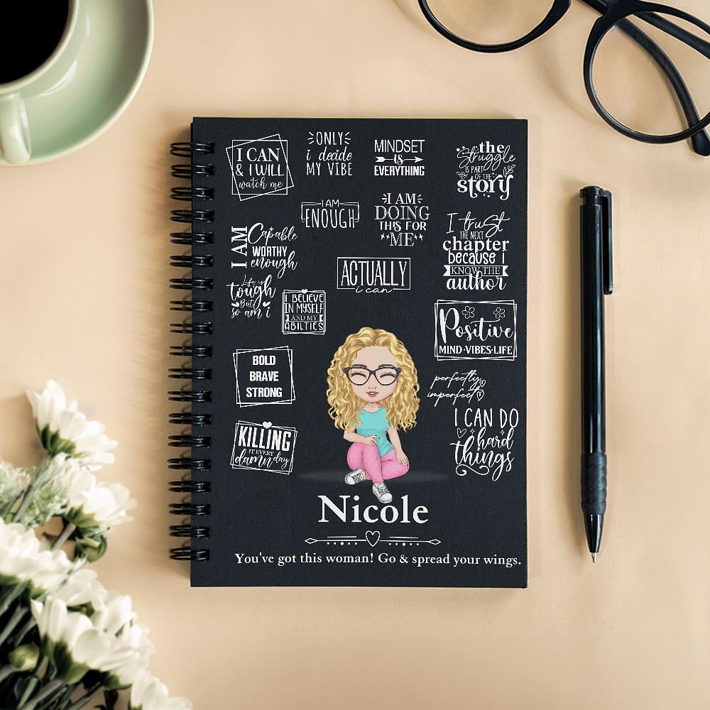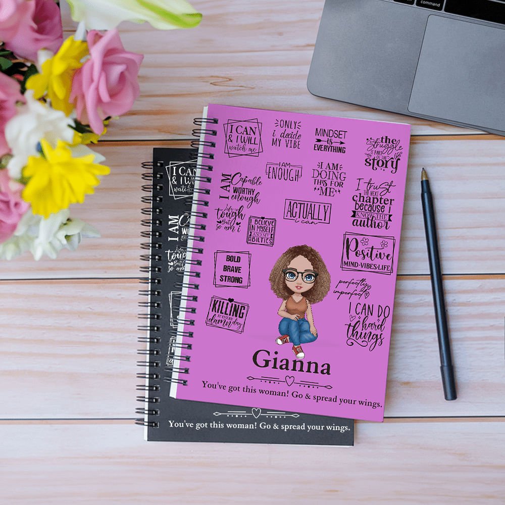 Mit einem warmen und heilenden weiblichen Cartoon-Bild als Thema, gepaart mit exklusiven Namen und inspirierenden Zitaten, zeigt dieses Notizbuch ein einzigartiges und durchdachtes Designkonzept. Es ist in verschiedenen Einbandfarben erhältlich und das Design ist voller positiver Energie, die Fürsorge und Ermutigung vermittelt und jedes Schreiben zu einem schönen Ritual der Selbstfürsorge macht.