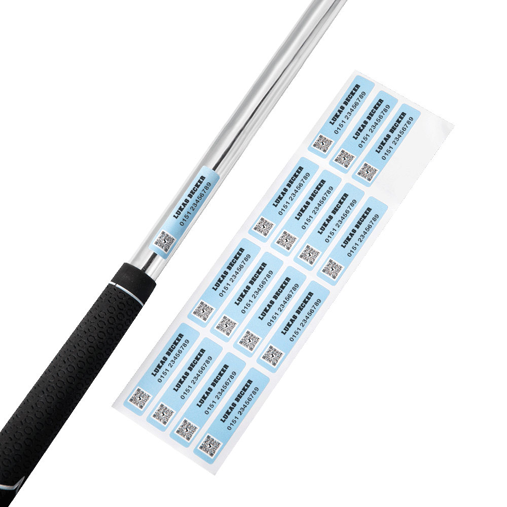 Neben Golfschlägern können die Aufkleber auch für anderes Golfzubehör wie Entfernungsmesser verwendet werden, die oft in Golfwagen vergessen werden. Sie können auch für andere Sportarten und persönliche Gegenstände wie Badmintonschläger, Tennisschläger, Eishockeyschläger usw. genutzt werden, um Verlust zu vermeiden.