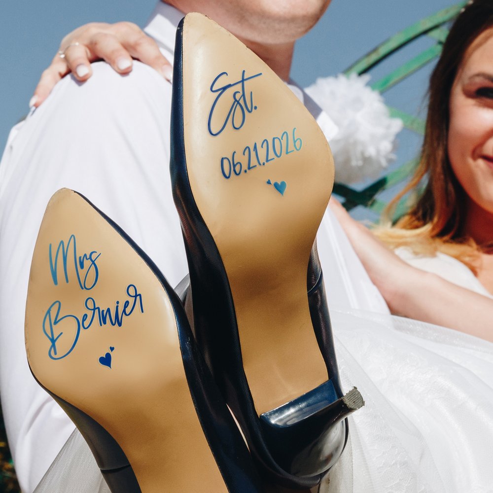 Möchten Sie Ihren Hochzeitsschuhen eine charmante persönliche Note verleihen? Wir stellen Ihnen unsere personalisierten Hochzeitsschuhaufkleber vor, mit denen Sie Text und Daten anpassen können, egal ob es sich um den Nachnamen, den Vornamen, das Hochzeitsdatum, das Datum des Jahrestages usw. handelt, und die bis zu 22 Schriftfarbenoptionen bieten, um Ihren unterschiedlichen Bedürfnissen gerecht zu werden. Jedes Mal, wenn die Braut ihre Hochzeitsschuhe anzieht, wird sie an ihre Liebesgeschichte und die Freude ihres Hochzeitstages erinnert, wodurch jeder Schritt in den Hochzeitssaal an Bedeutung gewinnt.