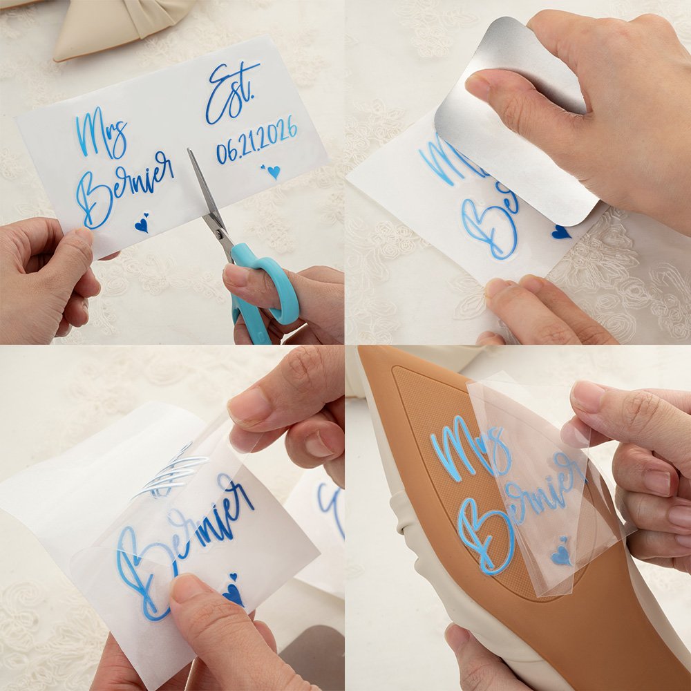 1. Reinigen Sie die Oberfläche der Schuhe und halten Sie sie trocken. Vermeiden Sie die Verwendung von groben Werkzeugen oder stark ätzenden Reinigungsmitteln bei der Reinigung. 2. Ziehen Sie das weiße Trägerpapier ab, wobei das Motiv auf der transparenten Folie verbleibt. 3. Bringen Sie die transparente Transferfolie mit der Klebeseite auf die Schuhe auf. 4. Entfernen Sie mit einem Spachtel oder einer Karte langsam alle Luftblasen, bevor Sie die Schutzfolie langsam abziehen.