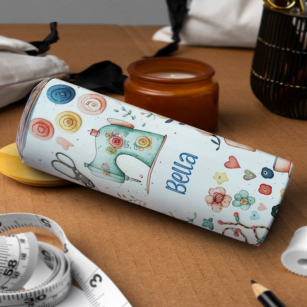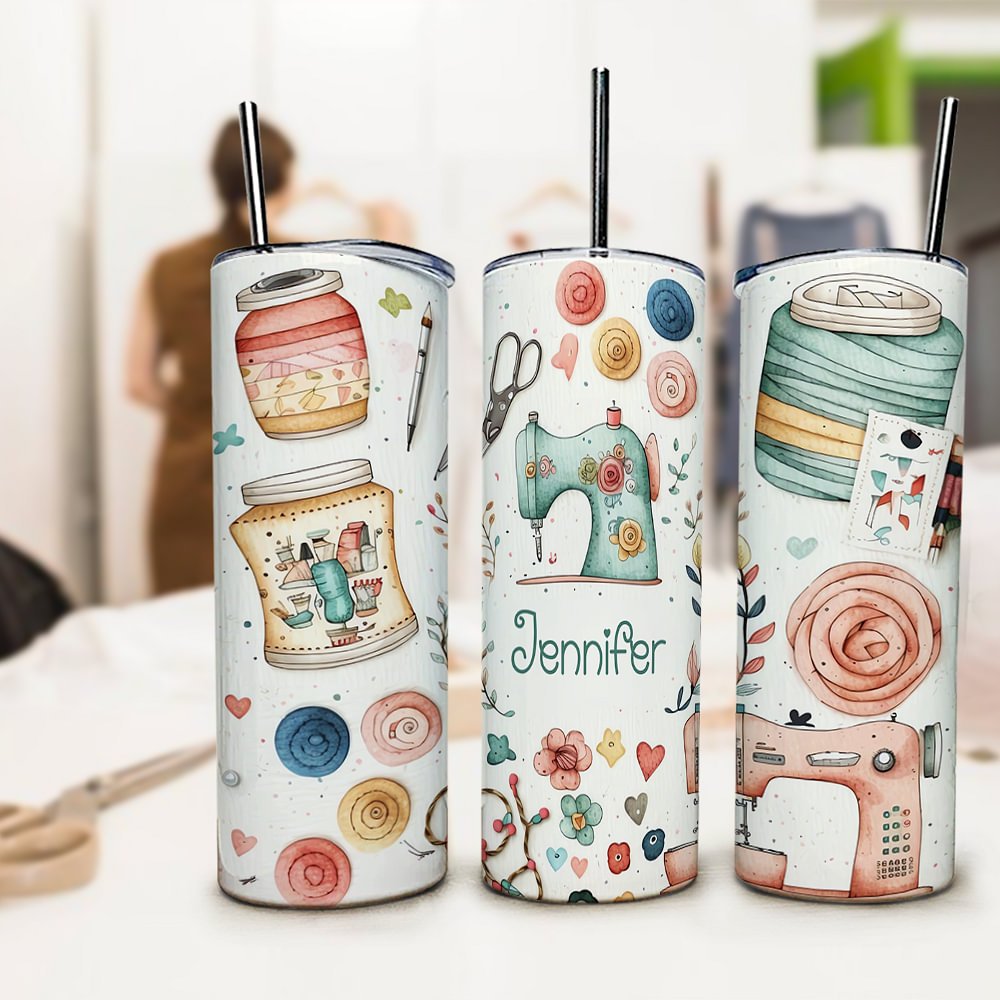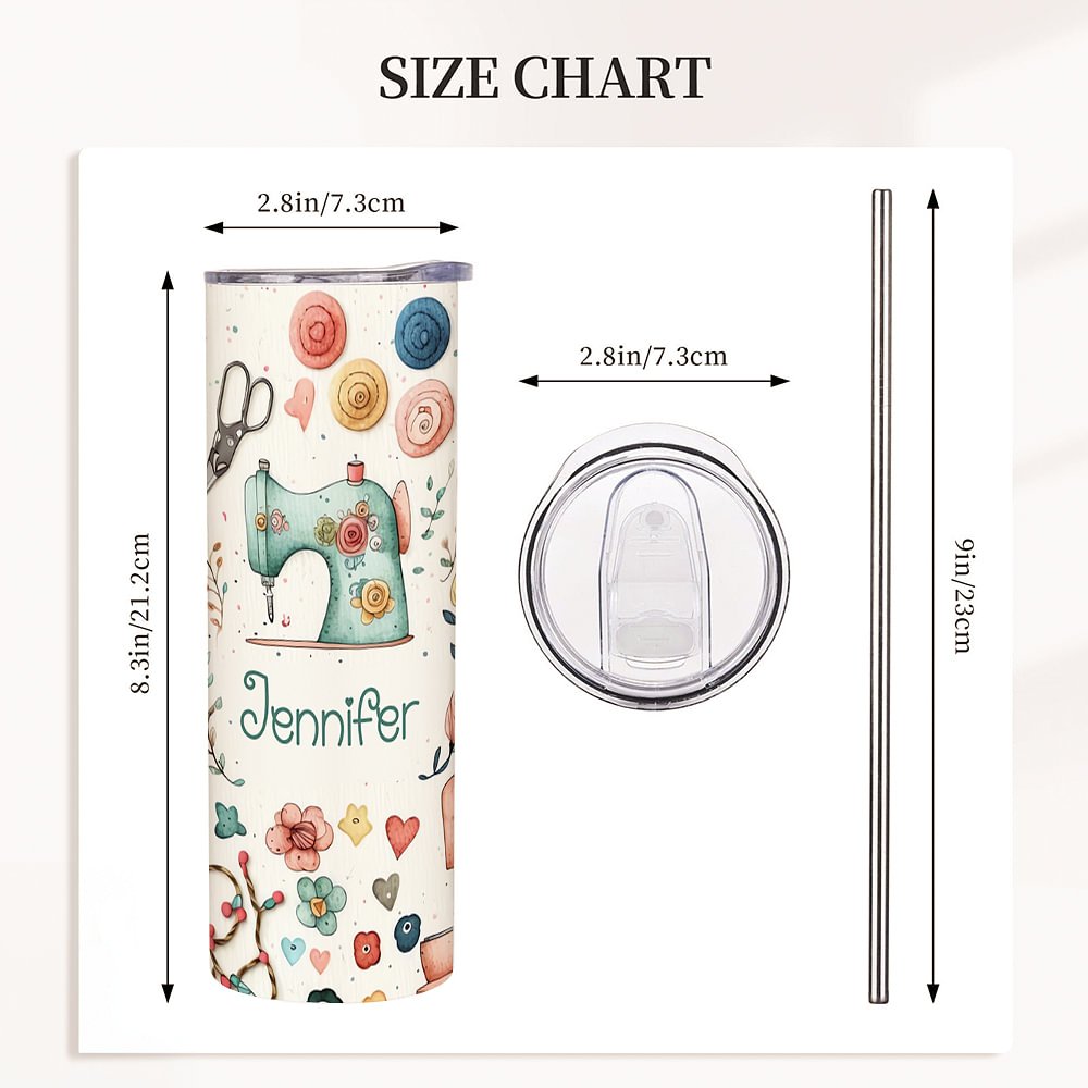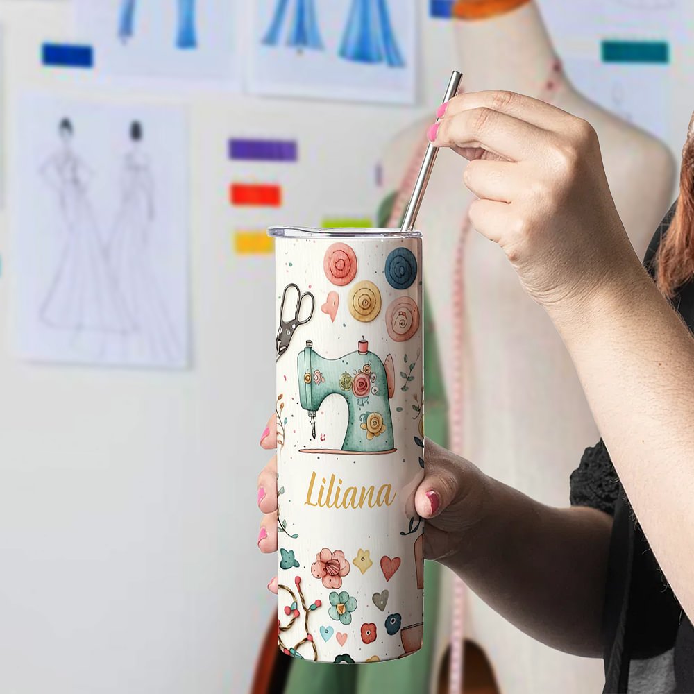 Personalisierte Nähen Thema Food Grade 20oz Skinny Tumbler mit Deckel und Stroh Reinigung Bürste Geburtstag Muttertag Geschenk für Mutter Nähen Liebha