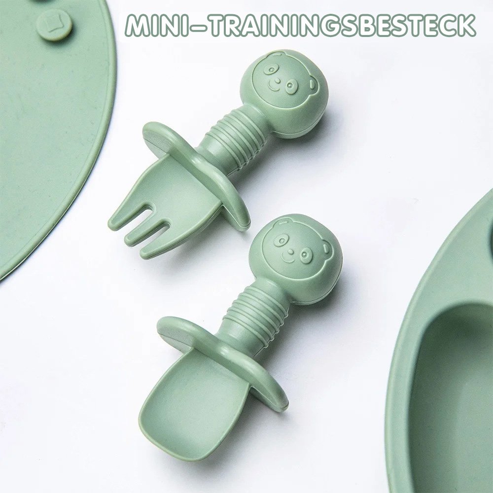 Jedes Babygeschirr-Set besteht aus zuverlässigem Silikonmaterial, das geruchsneutral, BPA- und PVC-frei ist. Hochwertiges, weiches Silikon ist sicher für Babys zum Essen und Kauen.