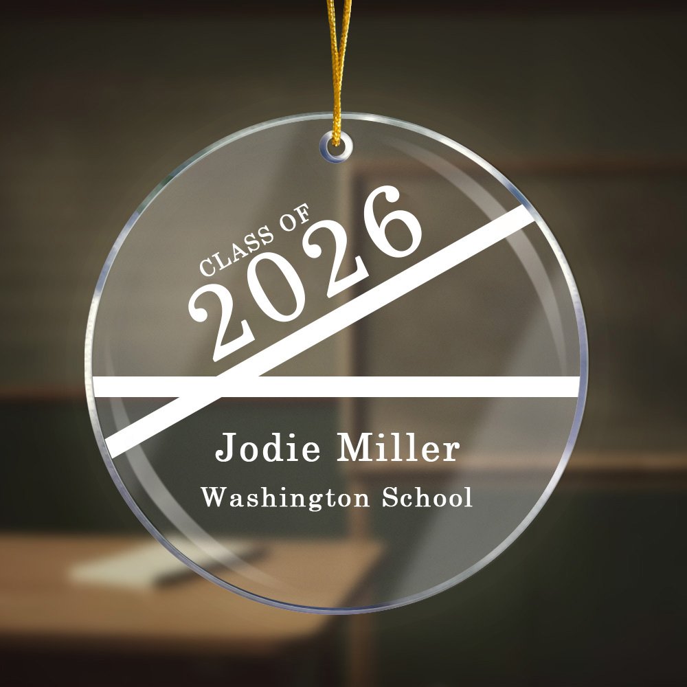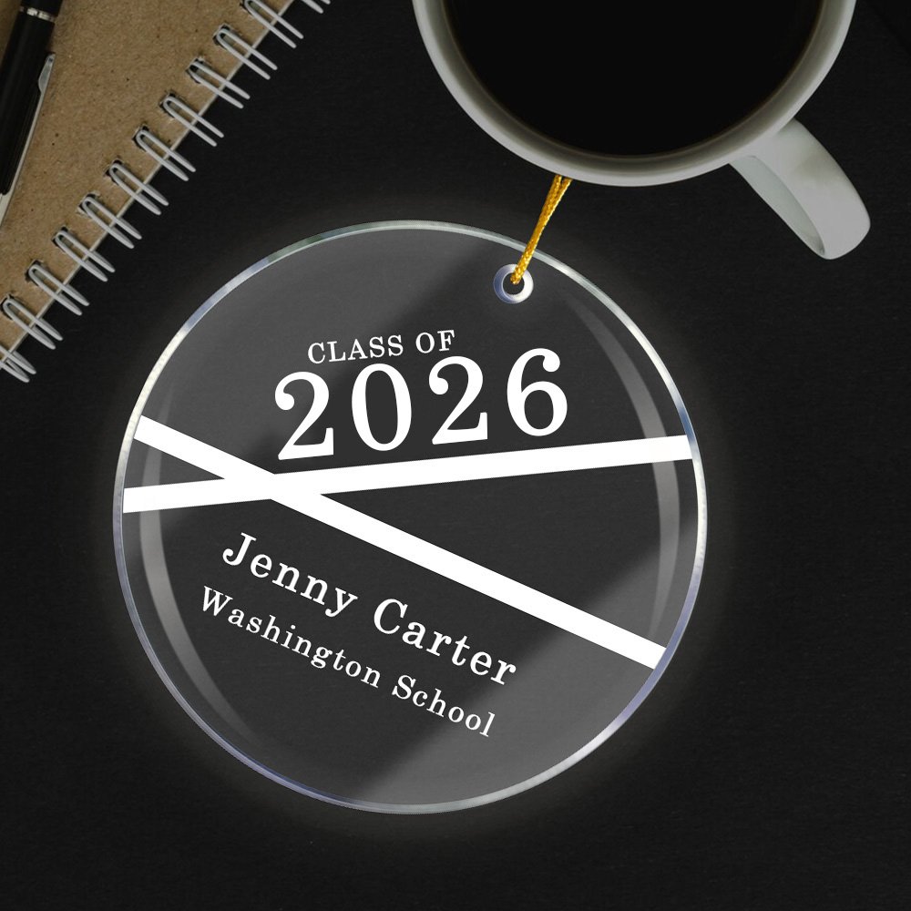 Dieses Ornament verwendet ein minimalistisches Liniendesign in Verbindung mit einer individuellen Abschlussbotschaft, was dieses Ornament zu einem unvergesslichen Accessoire macht.
