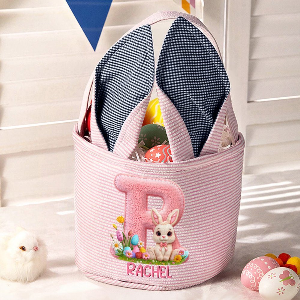 Mit einem dreidimensionalen Chenille-Hasen und einem Buchstabendesign als zentrales Designelement, das mit einem persönlichen Namen versehen werden kann, ist dieser Korb voller Osterzauber und kindlichem Spaß. Sein weiches und bezauberndes Design passt perfekt zur Ästhetik von Kindern.