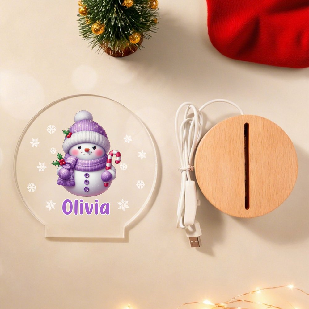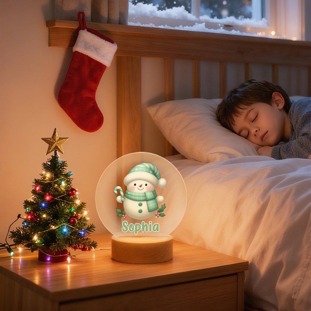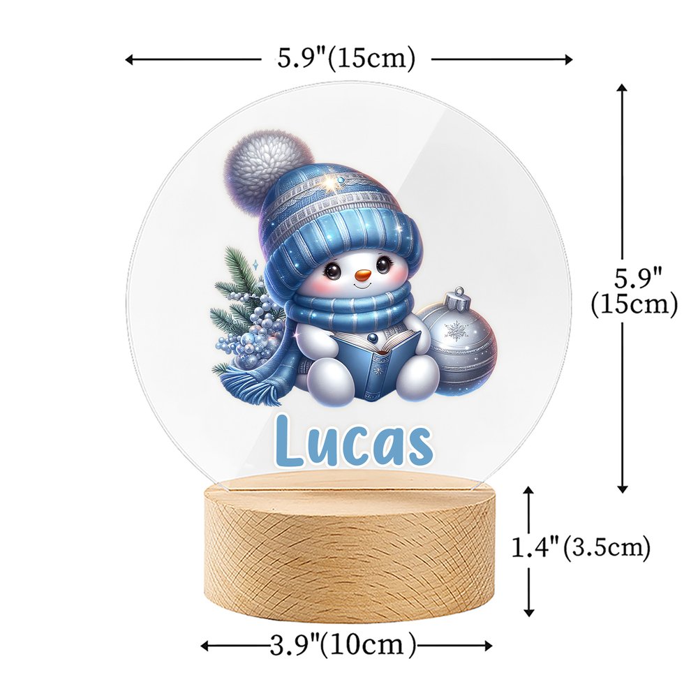 Wählen Sie aus 25 bezaubernden Schneemann-Motiven, jedes umgeben von schwebenden Schneeflocken und gekleidet in gemütliche Mützen und Schals. Jede verspielte Figur fängt die Freude an Weihnachten ein. Personalisieren Sie das Nachtlicht mit dem Namen Ihres Kindes, um ein einzigartiges Stück zu schaffen, das Wärme und Laune in das Kinderzimmer bringt.